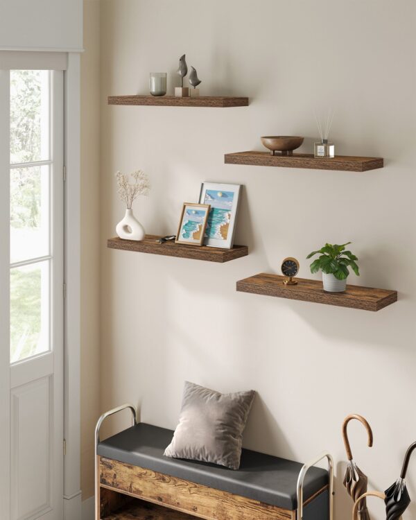 Šis rinkinys iš 4 lentynų yra puikus pasirinkimas jūsų namų interjerui. Vintažinė ruda ir juoda spalva suteikia elegancijos ir stiliaus bet kuriam kambariui.