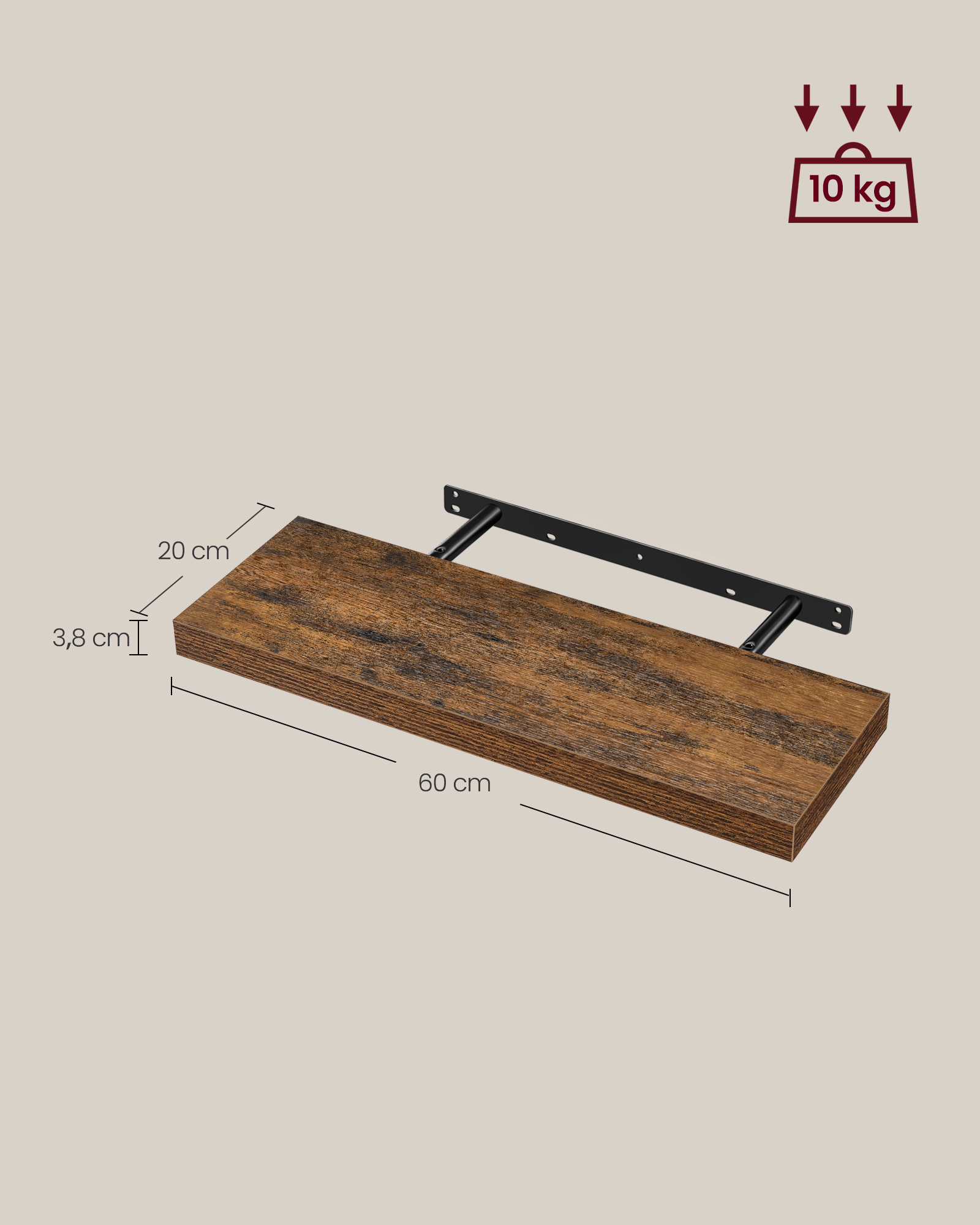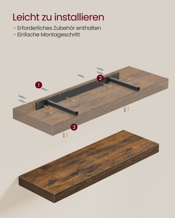 Pagamintos iš aukštos kokybės MDF (vidutinio tankio medienos plaušų plokštės) ir plieno, šios lentynos yra tvirtos ir ilgaamžės. Kiekvienos lentynos dydis yra 20 x 60 x 3,8 cm, o svoris – 1,9 kg.