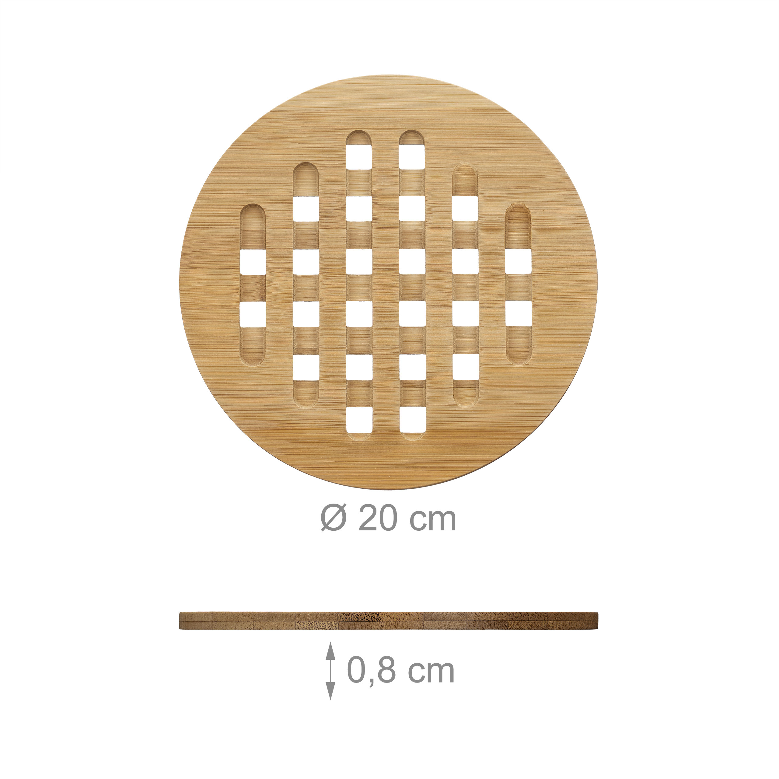 Pristatome elegantišką ir funkcionalų rinkinį iš 4 apvalių padėkliukų, kurie taps nepakeičiamu jūsų virtuvės pagalbininku. Šie padėkliukai yra pagaminti iš natūralaus bambuko, todėl jie ne tik puikiai atrodo, bet ir yra ypač draugiški aplinkai.