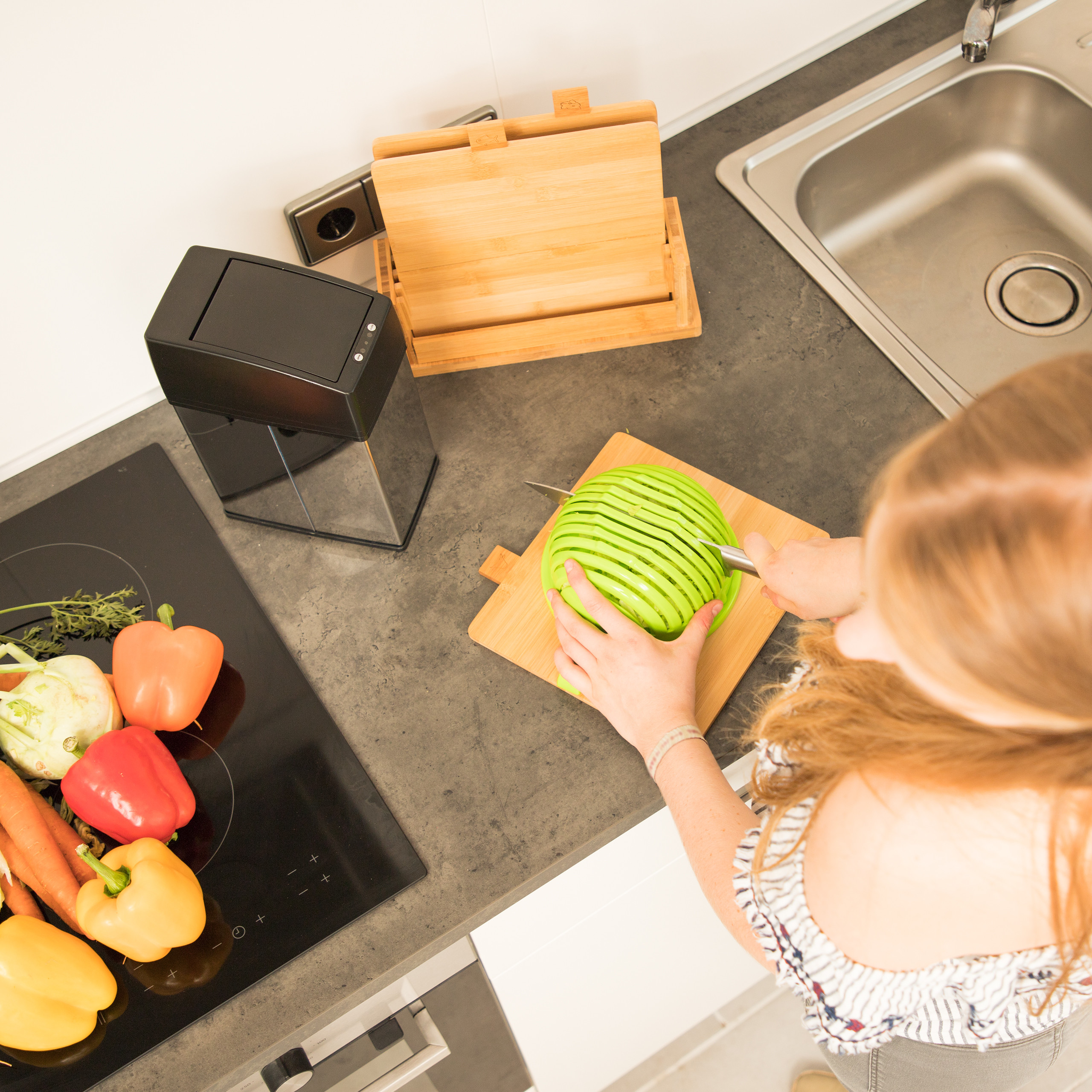 - Komplektacija: 4 pjaustymo lentelės ir patogus stovas.