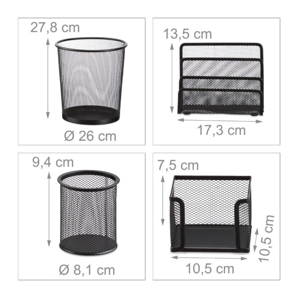 Įneškite tvarkos ir elegancijos į savo darbo erdvę su šiuo stilingu ir funkcionaliu rašymo priemonių organizatorių rinkiniu. Pagamintas iš tvirto metalinio tinklelio, šis rinkinys ne tik padės palaikyti tvarką, bet ir suteiks jūsų stalui modernų ir profesionalų įvaizdį.