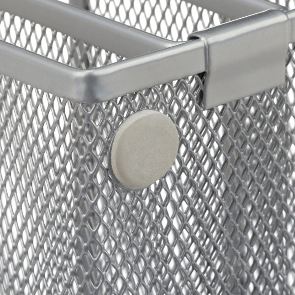 Visi biuro aksesuarai pagaminti iš aukštos kokybės metalo, o plonas vielos tinklelis sukuria patrauklų ir šiuolaikišką tinklelio vaizdą. Klasikinis tinklelio dizainas, sidabrinės spalvos, puikiai dera prie bet kokio darbo kambario interjero. Be to, minkštos apsaugos po kiekviena lentyna padeda išvengti įbrėžimų, užtikrinant, kad jūsų stalas išliktų nepriekaištingos būklės.