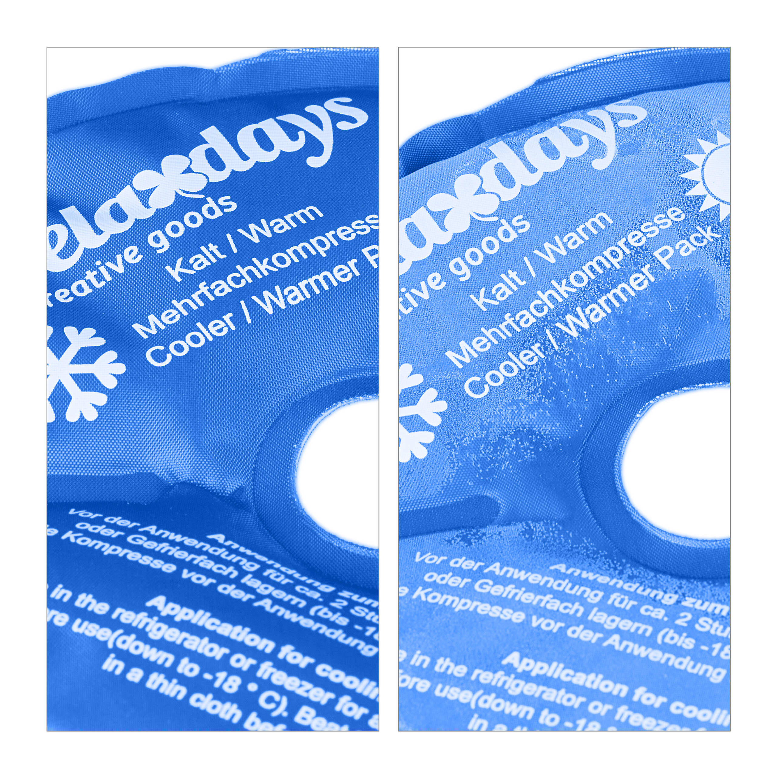 - Daugkartinio naudojimo: Gelio pakuotes galima lengvai atvėsinti šaldiklyje arba pašildyti mikrobangų krosnelėje ar vandens vonioje.