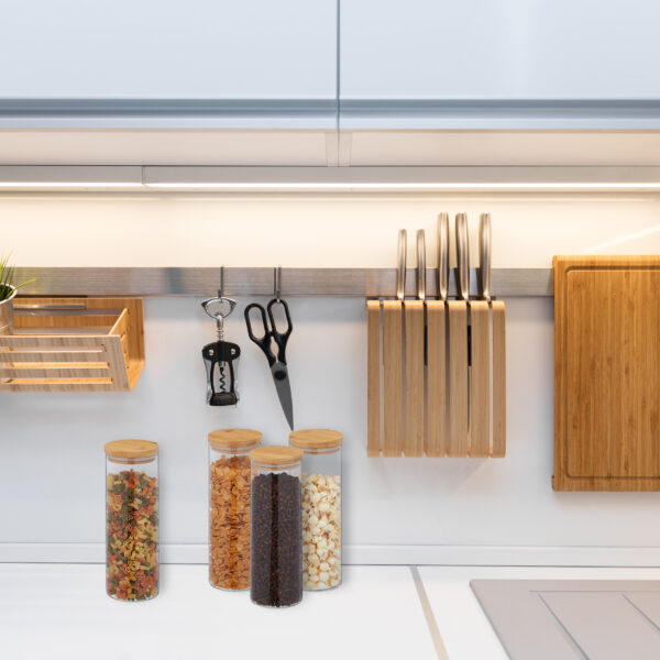 - Estetika: Skaidrus dizainas leidžia lengvai matyti turinį, o pripildyti indeliai tampa stilingu virtuvės akcentu.