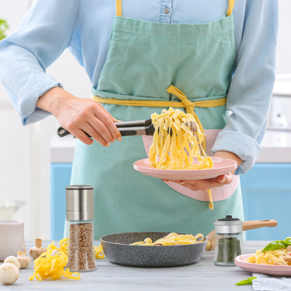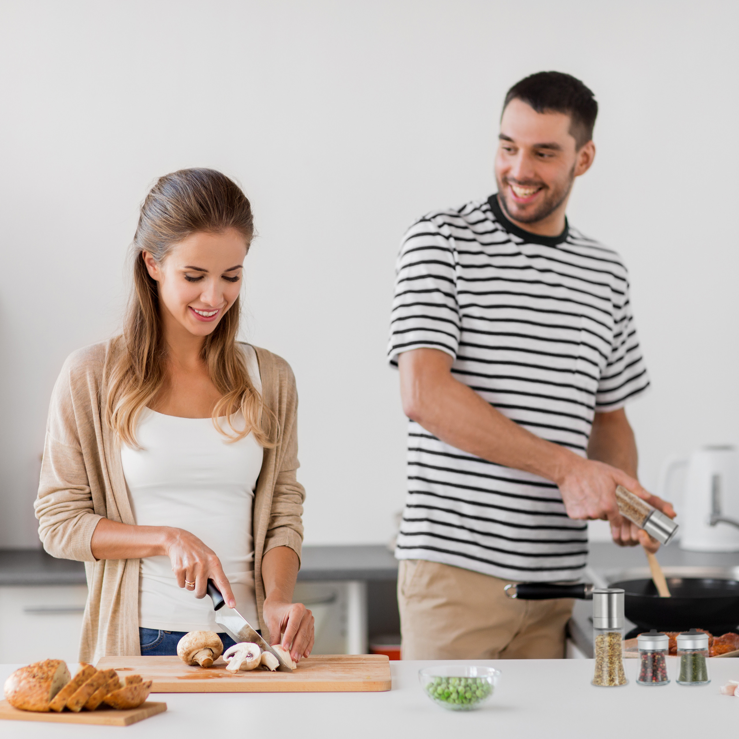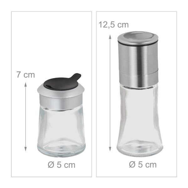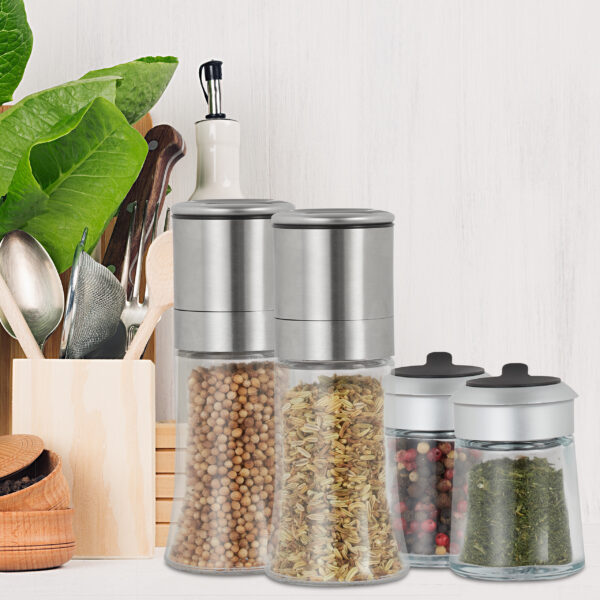 - Stilingas dizainas: Skaidrus korpusas leidžia lengvai matyti prieskonių kiekį, o sidabrinės ir juodos spalvos suteikia elegancijos jūsų virtuvei.