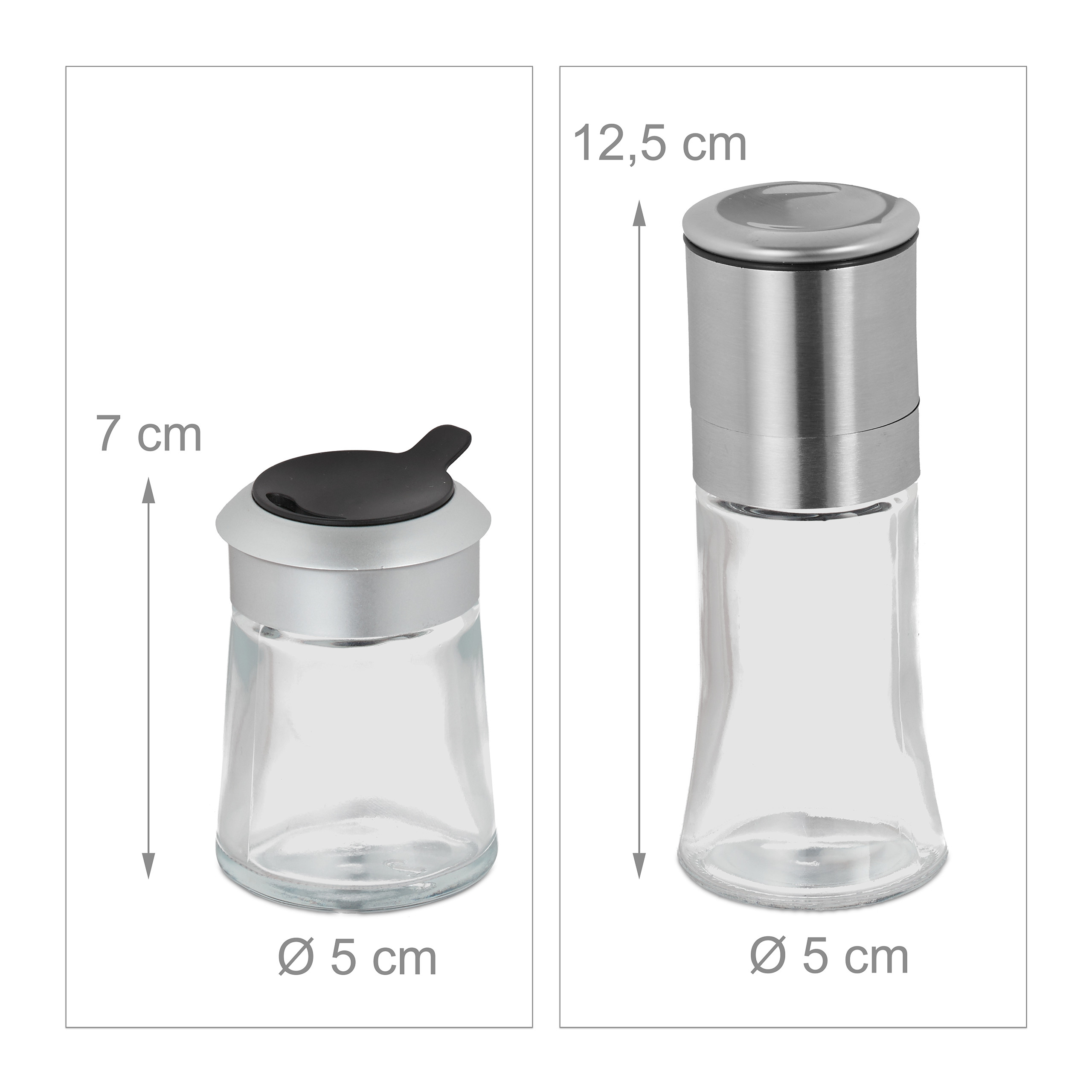 Rinkinys iš 4 skaidrių prieskonių malūnėlių 12,5x5cm, sidabrinės/juodos spalvos