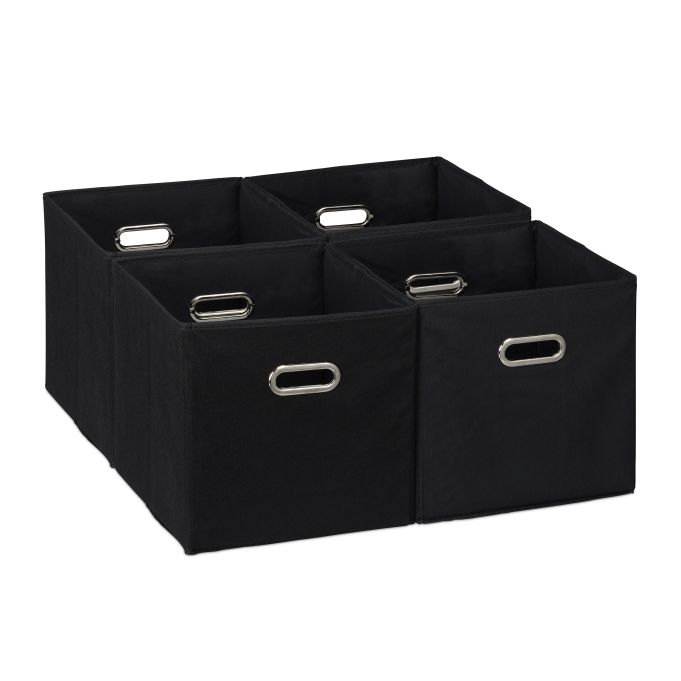 Rinkinys iš 4 Sulankstomų Dėžių 30x30x30cm, Juodos/Sidabrinės Spalvos