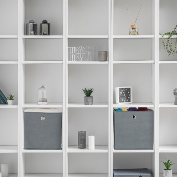 • Praktiškas dizainas: Dėžės lengvai telpa į daugybę įvairių lentynų sistemų skyrių, todėl jas galima naudoti įvairiose namų erdvėse.