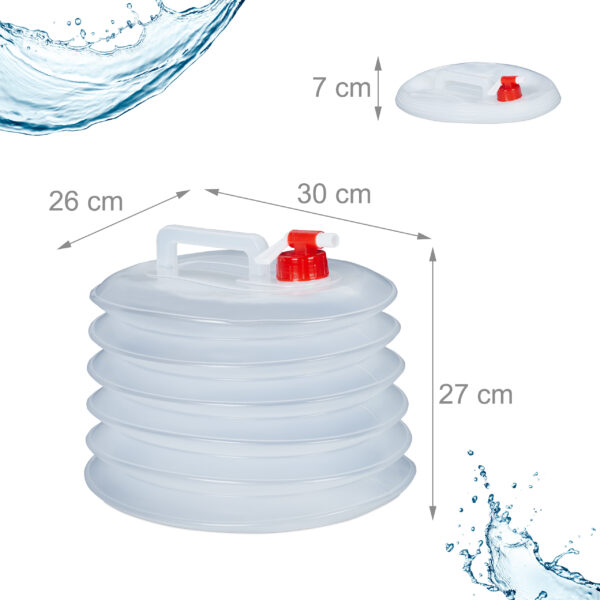 - Talpa ir Dydis: Kiekvienas kanistras yra 27x26x30 cm dydžio, užtikrinantis pakankamą vandens kiekį jūsų poreikiams.
