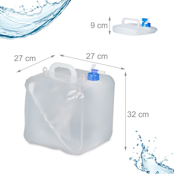 - Nešiojami ir Patogūs: Šie vandens kanistrai yra lengvi ir lengvai sulankstomi, todėl jie puikiai tinka stovyklavimui, festivaliams ar kitoms lauko veikloms.