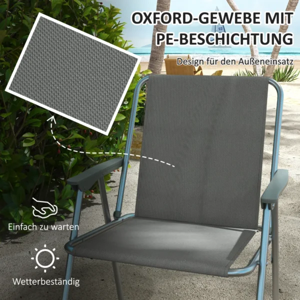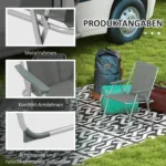 Kad ir kur eitumėte, atsisėskite su savimi patogiai. Kompaktiško dizaino sulankstomos stovyklavietės kėdės yra lengvai transportuojamos ir lengvai telpa automobilyje. Tai reiškia, kad esate gerai pasirengę stovyklavimui, iškyloms ir kelionėms paplūdimyje. Pagaminta iš atsparaus oro sąlygoms, milteliniu būdu dengto plieno, galite atsipalaiduoti savo terasoje. Porankiai suteikia atramą, o kvėpuojantis paviršius palaiko vėsą.
