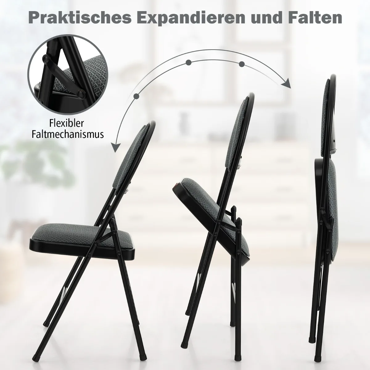 Rinkinys iš 4 valgomojo kėdžių 47x50x88,5 cm tamsiai pilkos ir juodos spalvos puikiai tinka namų ir biuro valgomojo erdvėms. Kėdės turi patogias minkštas sėdynes, išlenktus atlošus ir sulankstomą dizainą, leidžiantį taupyti vietą ir paprastai jas transportuoti.