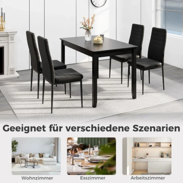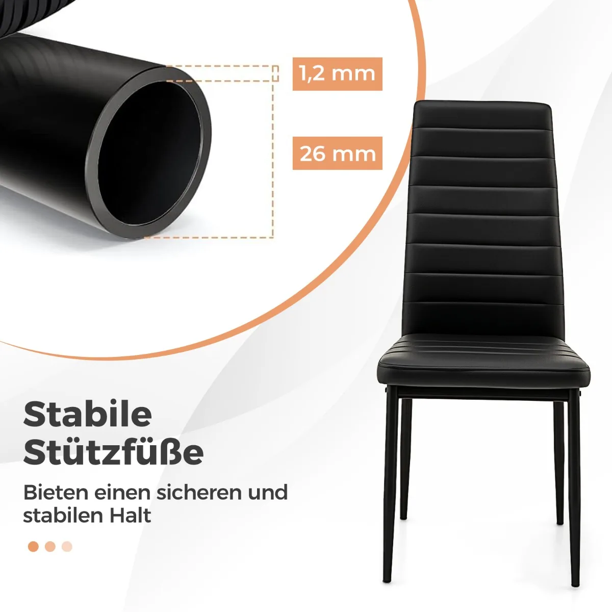 Rinkinys iš 4 valgomojo kėdžių juodos spalvos puikiai papildo jūsų valgomojo interjerą ir užtikrina patogumą kiekvieno valgymo metu. Kėdės pasižymi ilgaamžiškumu, patogiu sėdėjimu ir tinka tiek namų, tiek komercinėms erdvėms.