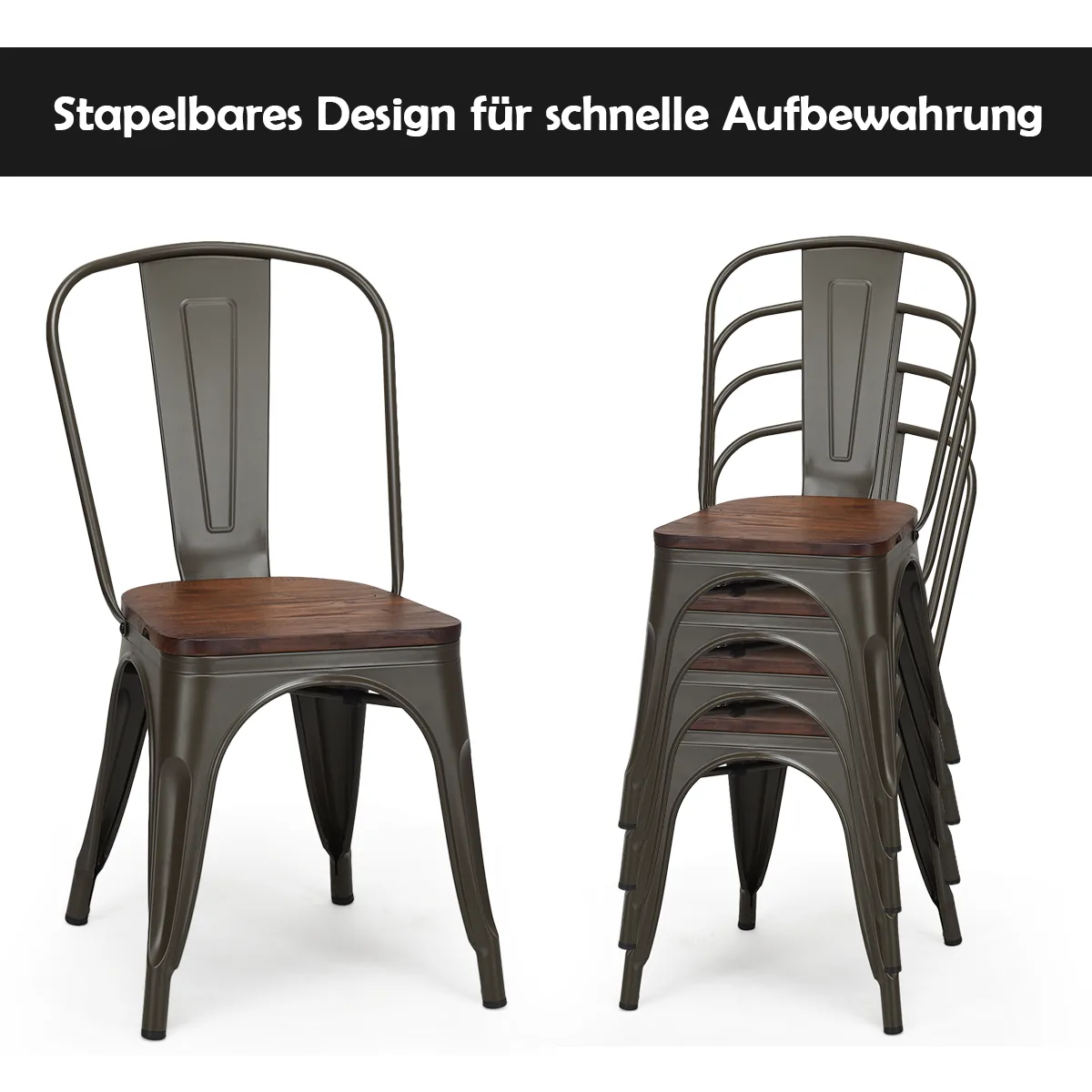 - Metalinės valgomojo kėdės su sustiprintu plieniniu rėmu užtikrina didelį tvirtumą ir stabilumą.