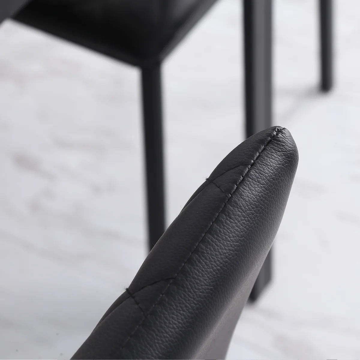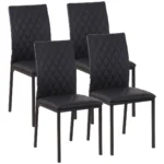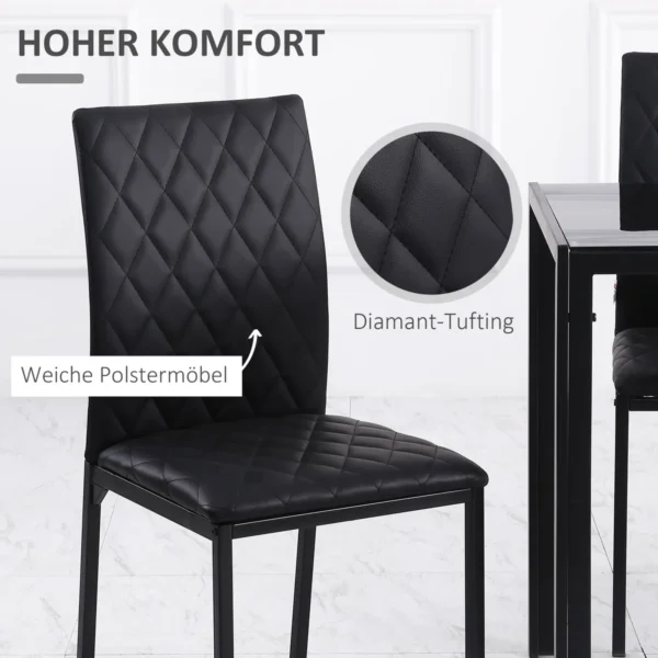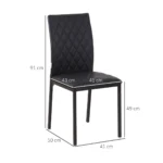 Sukurkite erdvę kiekvienam svečiui su virtuvės kėdžių rinkiniu iš HOMCOM, kurį sudaro 4 modernios kėdės, jis puikiai tiks prie skirtingų interjero stilių ir kiekvienuose namuose. Aukštas atlošas suteikia optimalią atramą, o paminkštinta sėdynė su dirbtinės odos danga užtikrina maksimalų komfortą. Dėl plieno rėmo kėdės yra tvirtos ir tinkamos naudoti kasdien. Su grindų apsaugomis, kad būtų išvengta įbrėžimų.