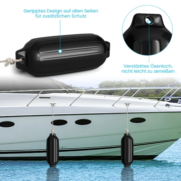 Rinkinys iš 4 valties bortų apsaugų 58×16,5 cm juodos spalvos skirtas apsaugoti valtį nuo susidūrimų ir nusidėvėjimo. Šios bortų apsaugos pagamintos iš neabrazyvinio PVC medžiagos, užtikrina patvarumą ir atsparumą įvairioms sąlygoms. Produktas yra lengvai montuojamas ir tinkamas tiek vertikaliam, tiek horizontaliam tvirtinimui.