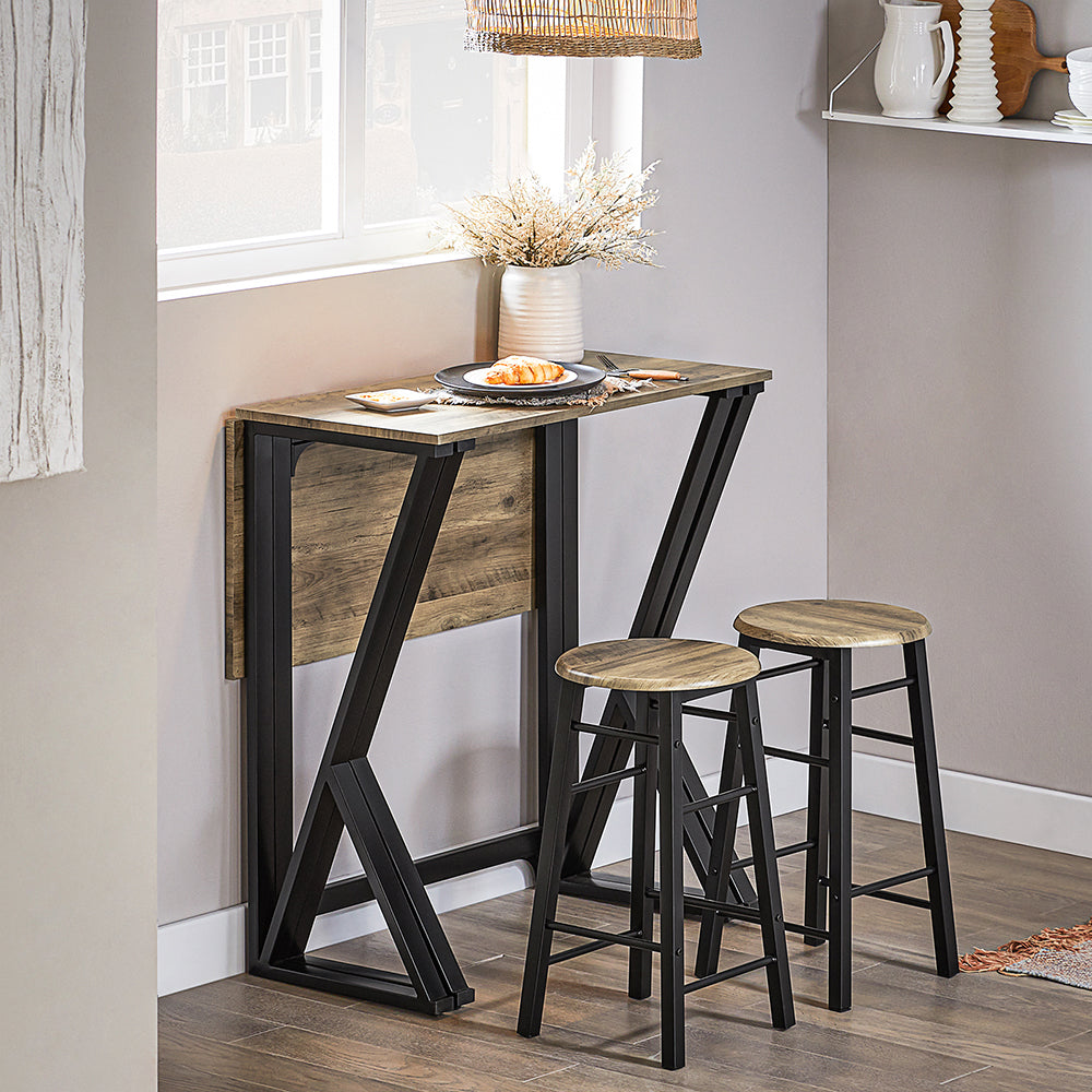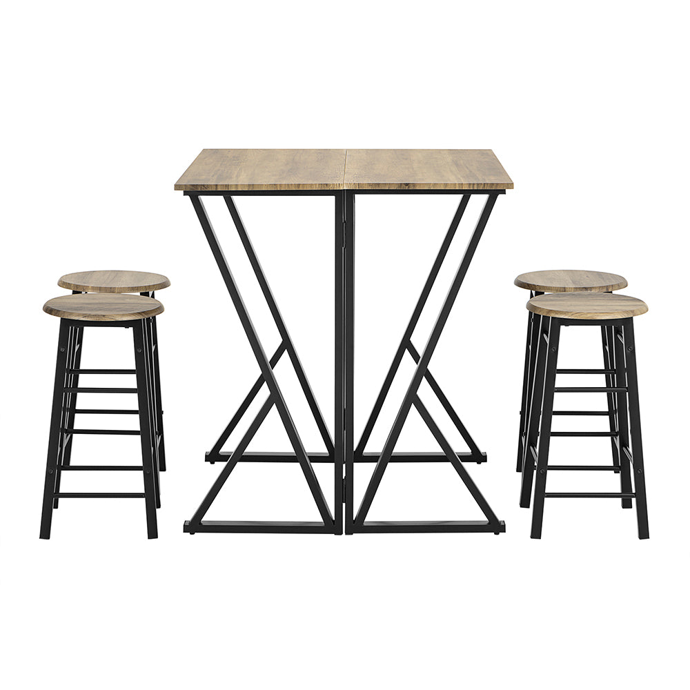 Šis rinkinys iš 4 virtuvės kėdžių ir valgomojo stalo, rudos/juodos spalvos, yra puikus pasirinkimas jūsų virtuvės kampui ar mažesnei valgomojo erdvei. Stalas yra itin stabilus dėl metalinio pagrindo, o jo dydis gali būti lengvai pritaikomas pagal jūsų poreikius, todėl tai yra praktiškas sprendimas, jei turite ribotą erdvę.