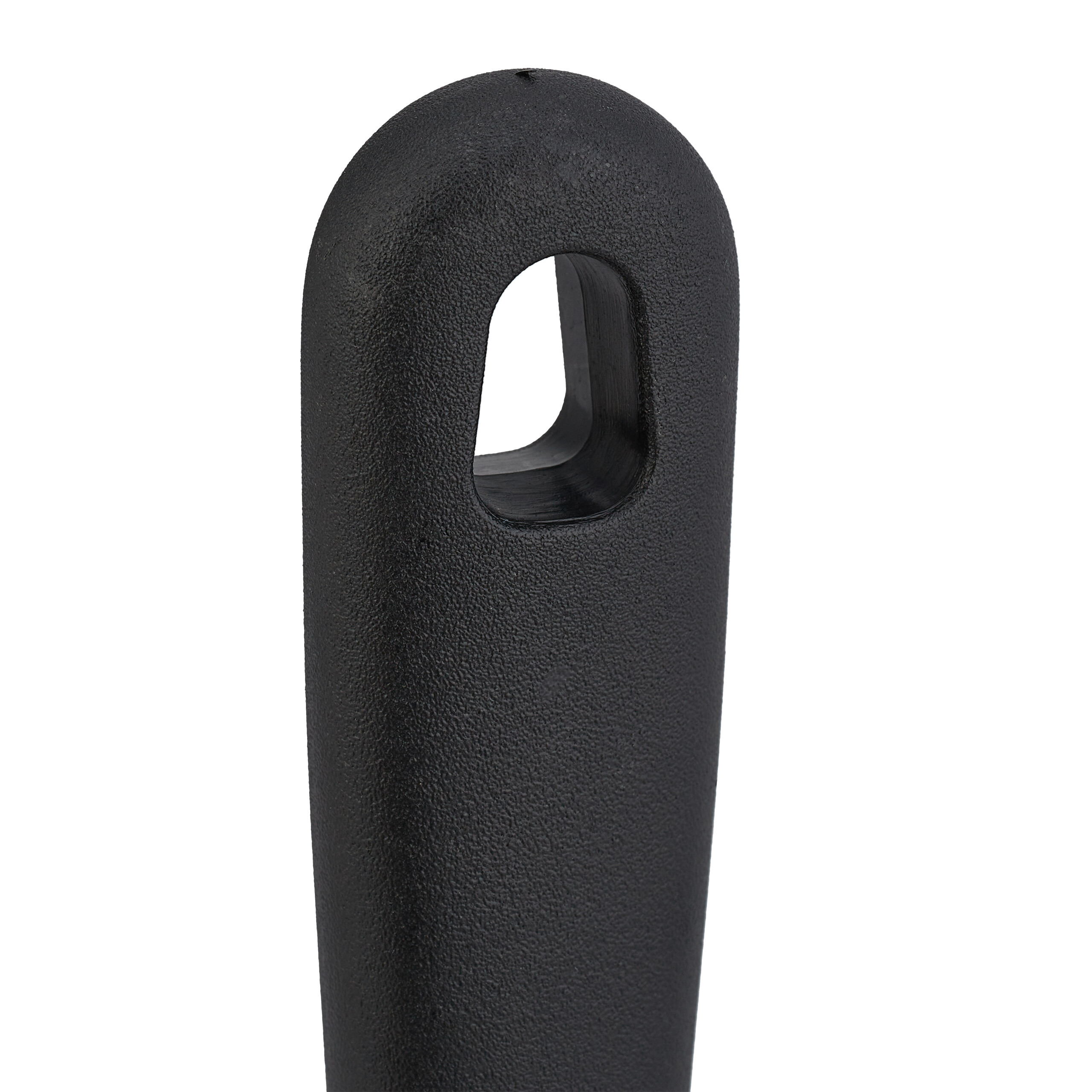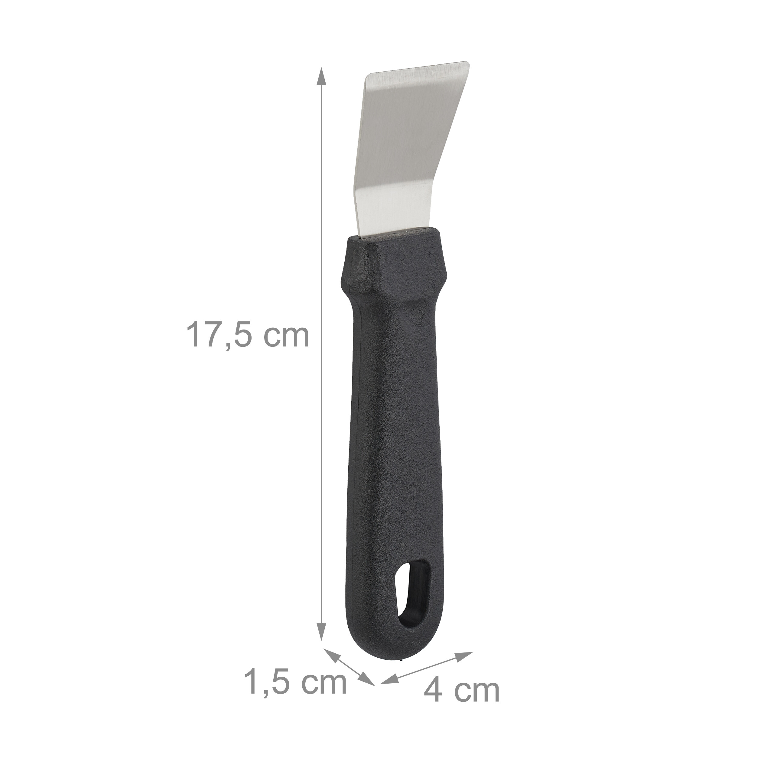 Medžiaga: Tvirtas nerūdijantis plienas su juoda plastikine rankena
