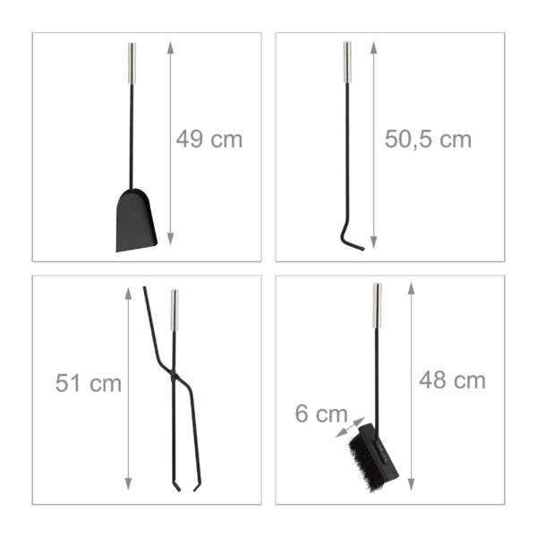 Visi įrankiai yra patogiai laikomi ant matinės juodos spalvos stovo su sidabrinėmis nerūdijančio plieno rankenomis, užtikrinančiomis ilgaamžiškumą ir patvarumą. Šis modernus židinio įrankių rinkinys ne tik palengvins jūsų kasdienybę, bet ir taps stilingu jūsų namų akcentu.