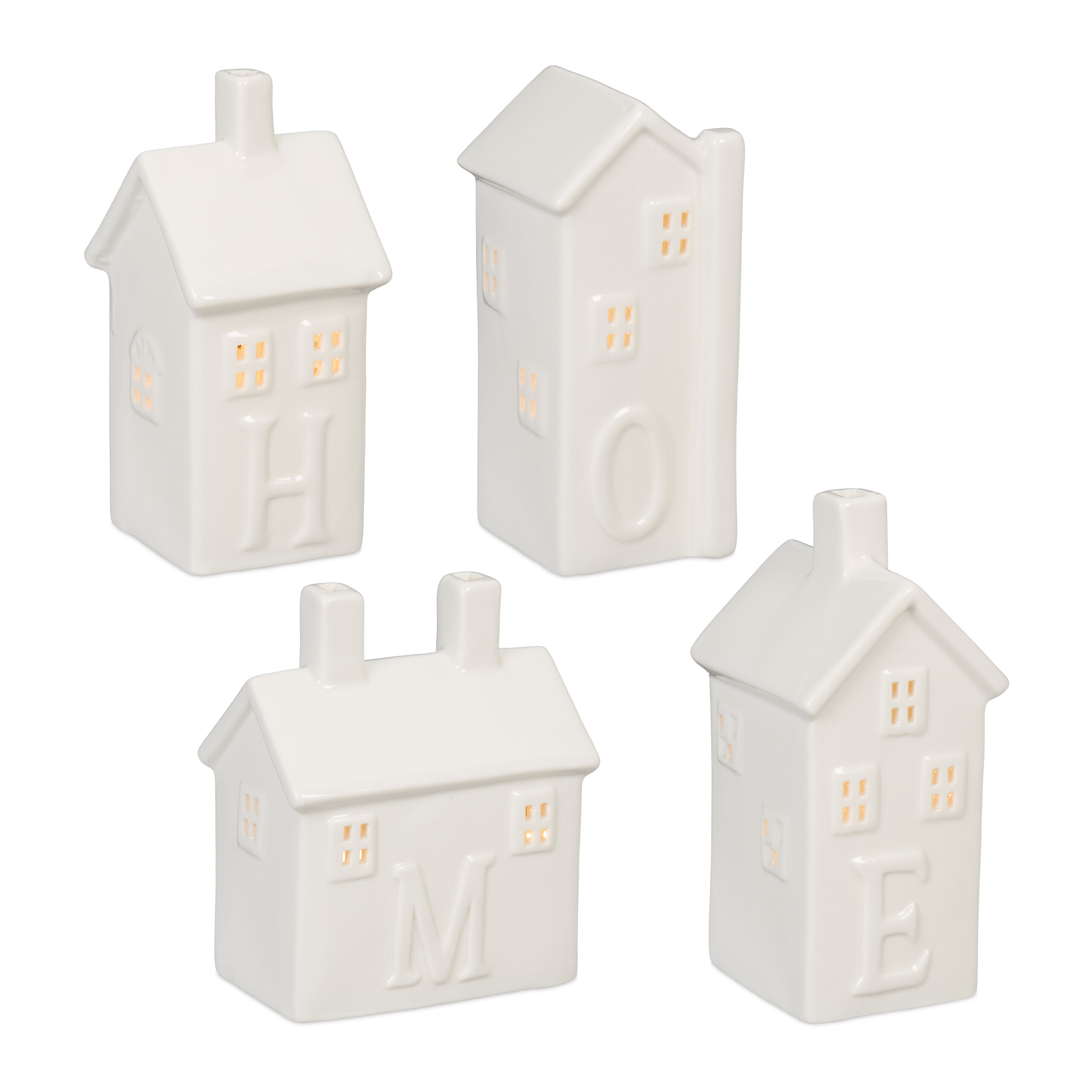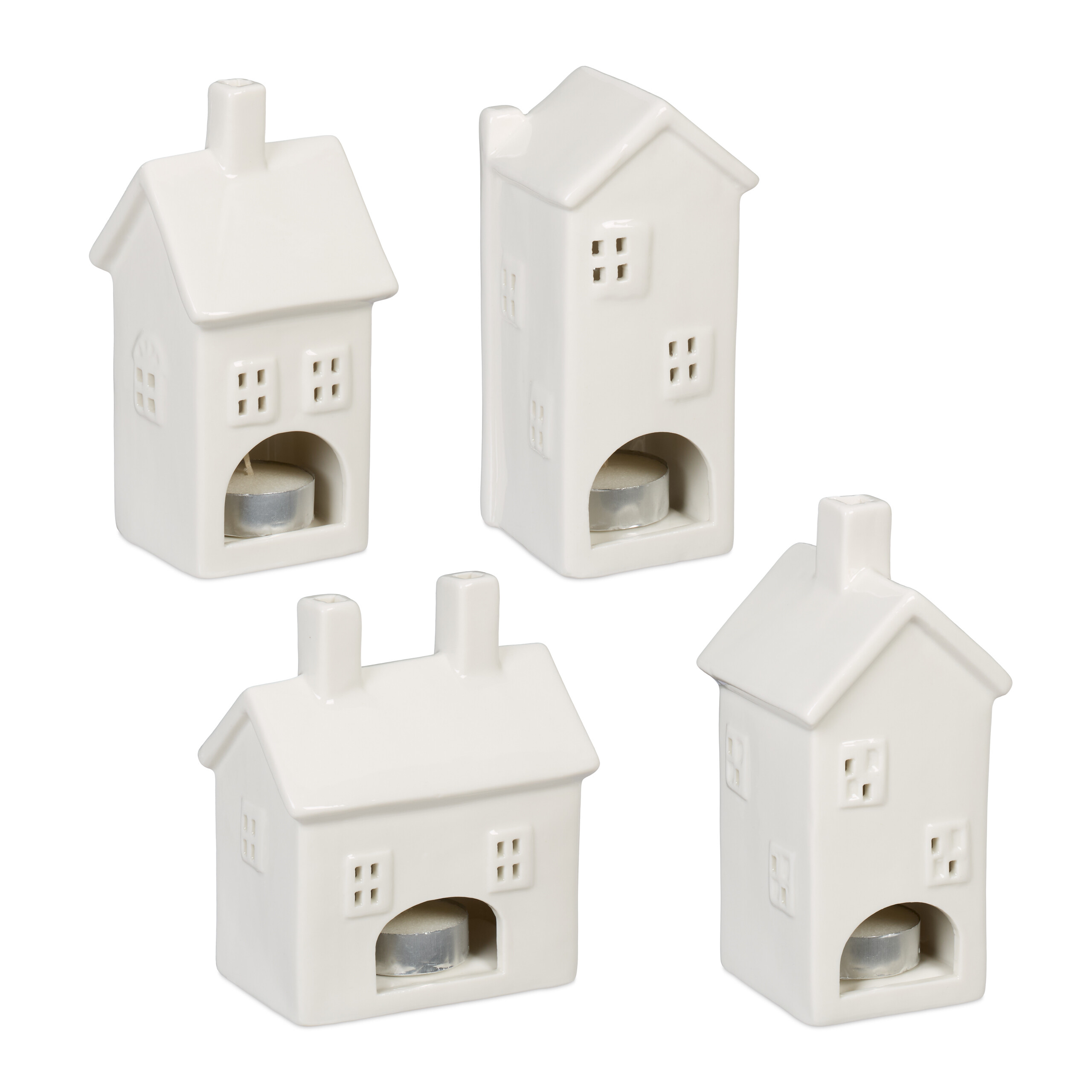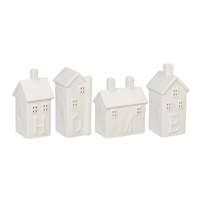 Rinkinys iš 4 žvakės žvakidžių „Namai”, baltos spalvos