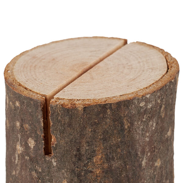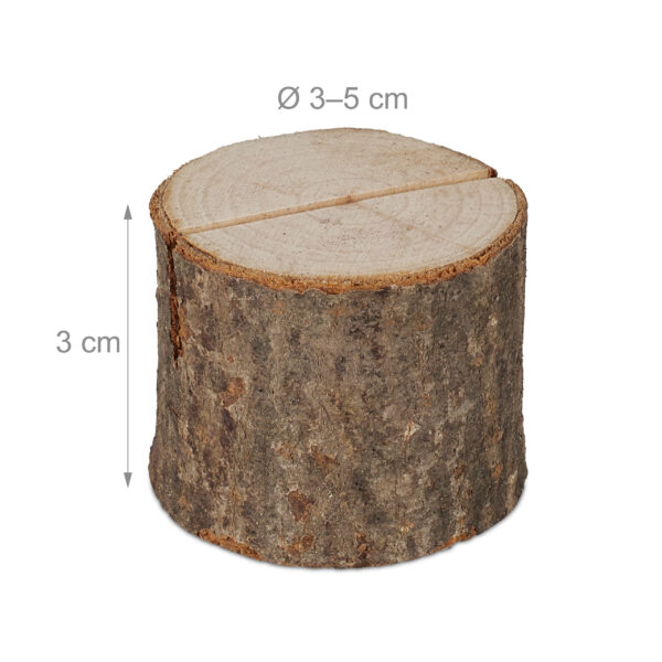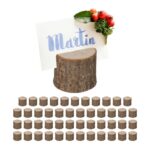 Atraskite natūralią eleganciją su mūsų mediniais kortelių laikikliais, kurie puikiai papuoš jūsų stalą. Šis rinkinys, sudarytas iš 48 kortelių laikiklių, yra pagamintas iš mažų medžių kamienų su žieve, suteikiant kiekvienam laikikliui unikalų ir kaimišką žavesį.