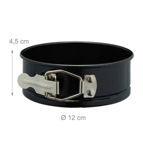 Šis rinkinys iš 5 mini tortų formelių yra puikus pasirinkimas kiekvienam kepinių entuziastui, siekiančiam sukurti mažo formato šedevrus. Šios mažos spyruoklinės formos yra ne tik funkcionalios, bet ir stilingos, juodos ir sidabrinės spalvos derinys suteikia elegancijos jūsų virtuvei.