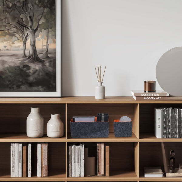 Įneškite tvarkos ir stiliaus į savo namus su šiuo universaliu stalčių organizavimo rinkiniu. Šis 5 dalių daiktadėžių rinkinys padės jums lengvai sekti ir tvarkyti stalčių bei komodų turinį. Tamsiai pilki organizatoriai su oranžiniais akcentais ne tik funkcionalūs, bet ir puikiai dera svetainės, miegamojo ar vaikų kambario lentynose.