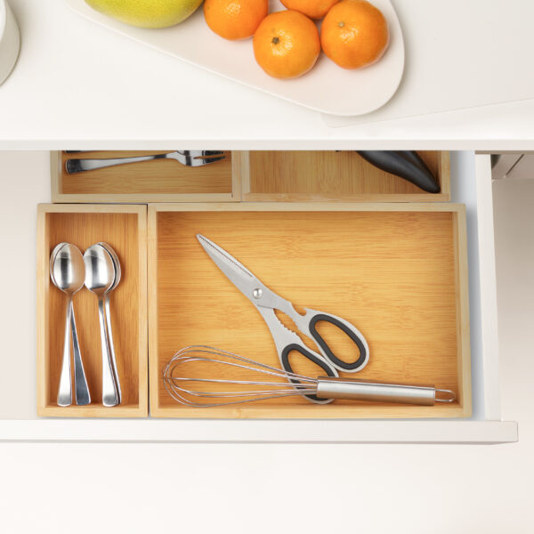Pasirinkite šį bambukinių laikymo padėklų rinkinį ir mėgaukitės tvarka bei stilingu interjeru kiekvieną dieną!