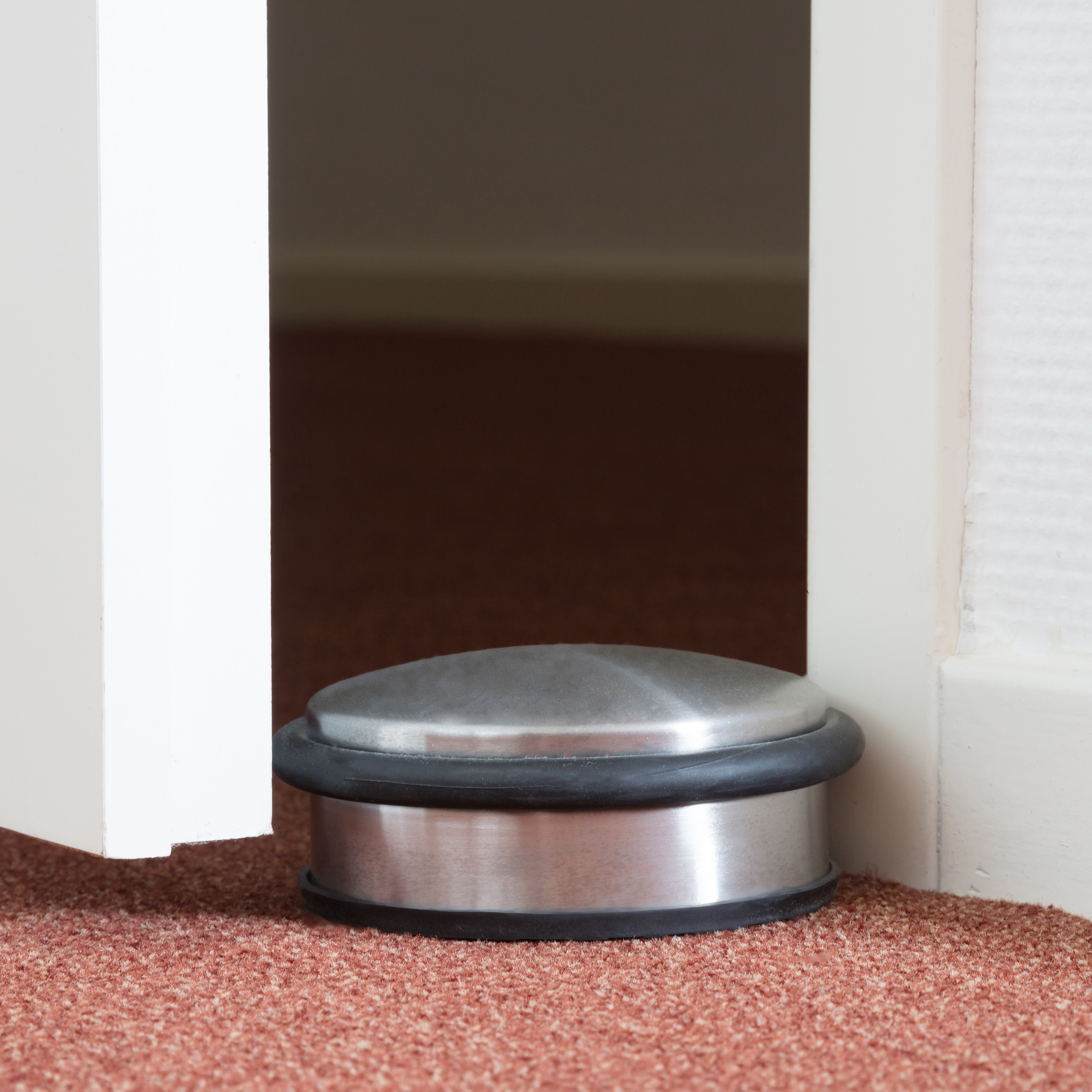 - Apsauga: Gumuota apatinė dalis neleidžia atramai paslysti, o aplink esantis guminis žiedas apsaugo duris ir baldus nuo apgadinimo.