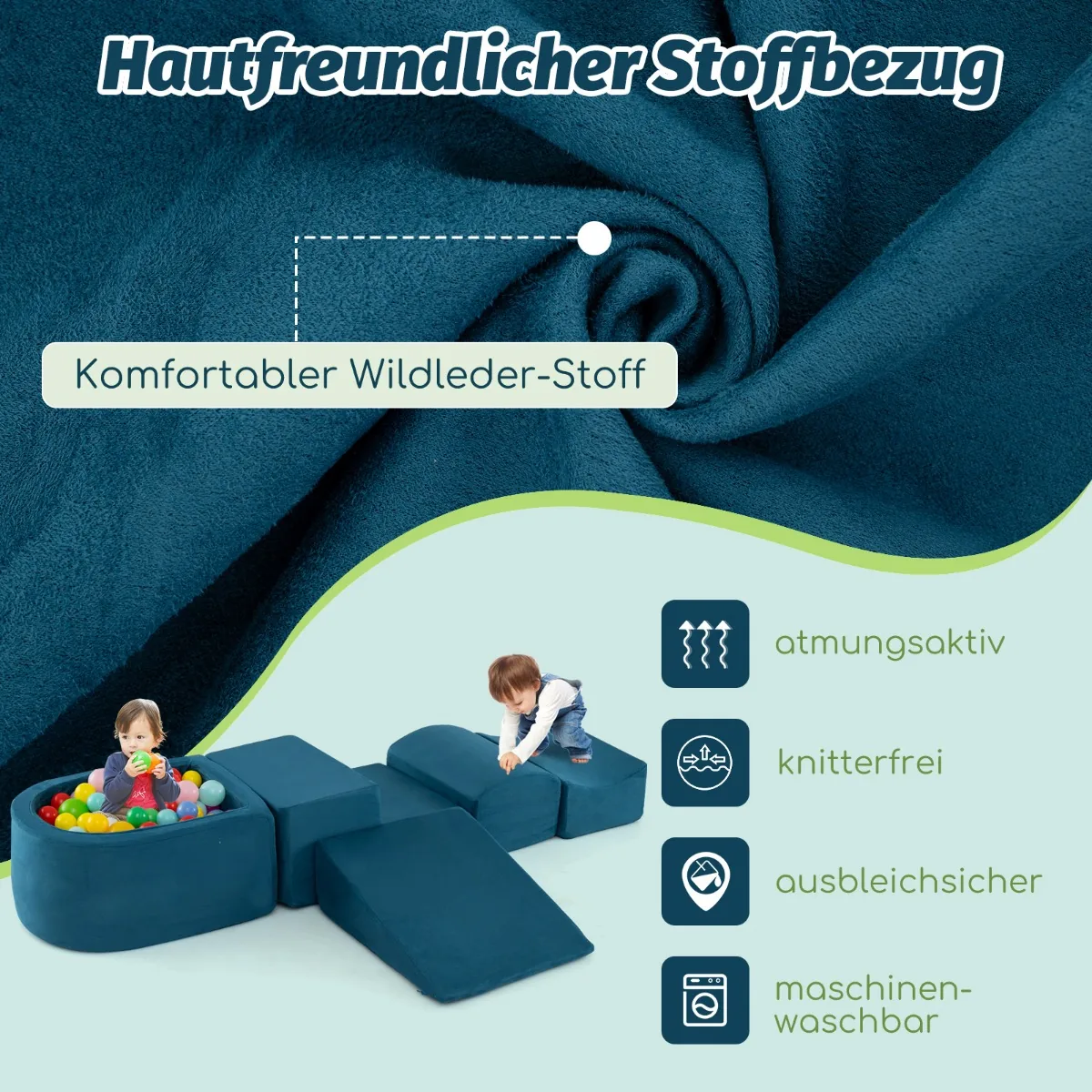 Rinkinys iš 5 statybinių kaladėlių mėlynos spalvos skirtas vaikų lavinimui ir smagiam laipiojimui. Šis minkštas kaladėlių komplektas padeda ugdyti motoriką, koordinaciją ir kūrybiškumą vaikams nuo 3 metų.