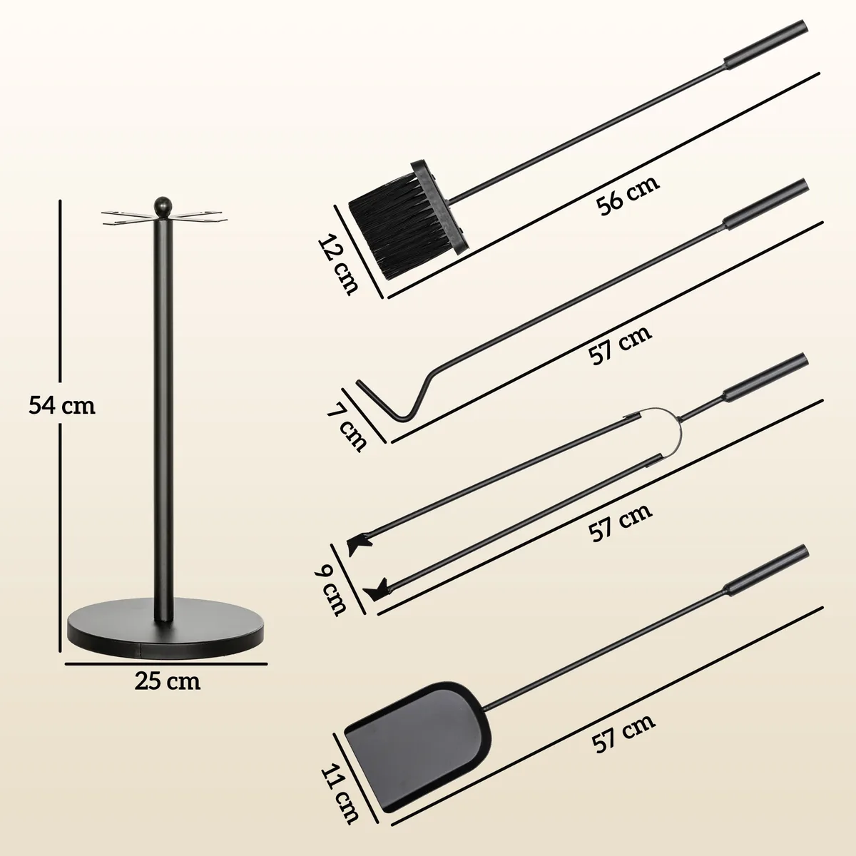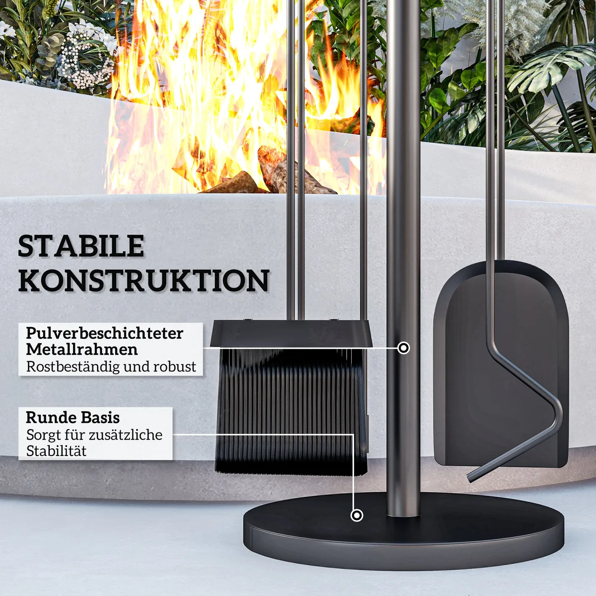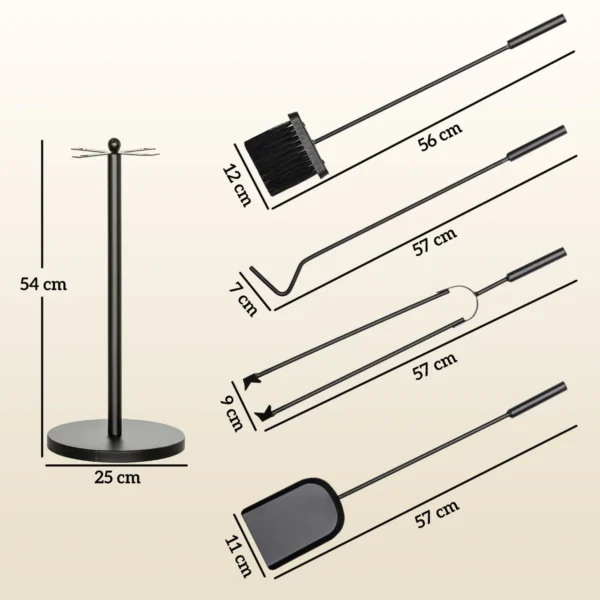 - ✔ Penkių dalių rinkinį sudaro šluota, kastuvas, žnyplės, pokeris ir tvirtas stovas.