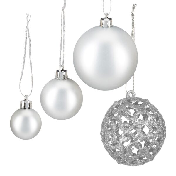 Rinkinys iš 50 Kalėdinių Kamuoliukų, Sidabrinės Spalvos