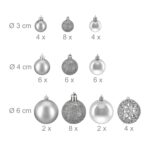 Pasiruoškite šventiniam sezonui su mūsų elegantišku ir stilingu kalėdinių kamuoliukų rinkiniu. Šis rinkinys, sudarytas iš 50 sidabrinės spalvos kamuoliukų, suteiks jūsų eglutei prabangos ir blizgesio, kuris neabejotinai pritrauks visų dėmesį.