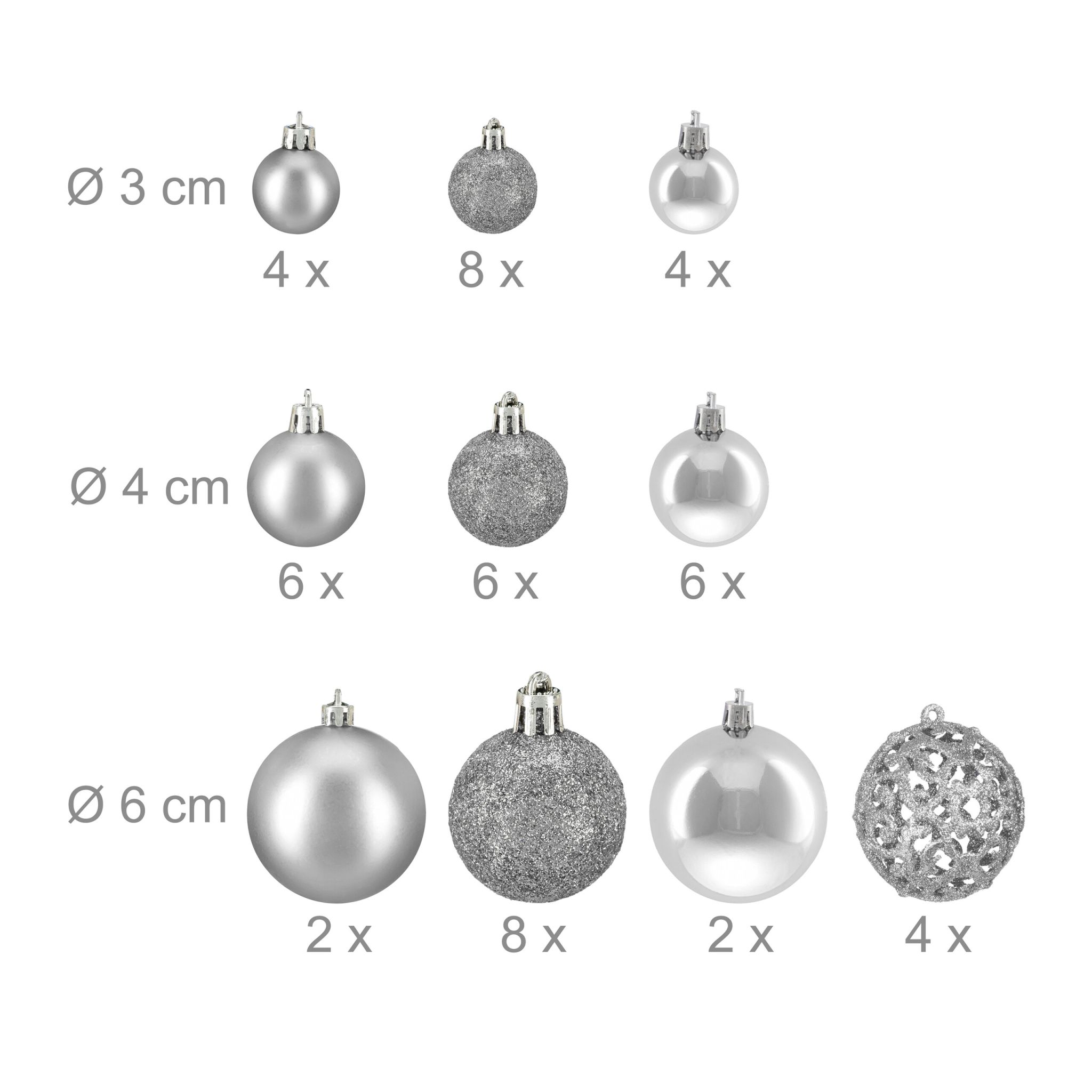 Šis rinkinys yra puikus pasirinkimas tiems, kurie nori sukurti įsimintiną ir stilingą šventinę atmosferą savo namuose. Papuoškite savo eglutę šiais nuostabiais sidabriniais kamuoliukais ir leiskite jiems spindėti šventinėje šviesoje!