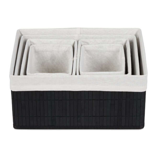 • Universalus panaudojimas: Šie bambukiniai krepšeliai puikiai tinka ne tik svetainėje ar miegamajame, bet ir vaikų kambario lentynose, suteikdami tvarkos ir estetikos.