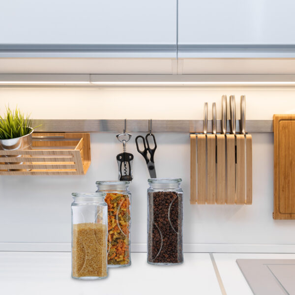 Universalumas: Idealiai tinka makaronams, ryžiams, sausainiams, musliams, kukurūzų dribsniams ar kavos pupelėms laikyti.