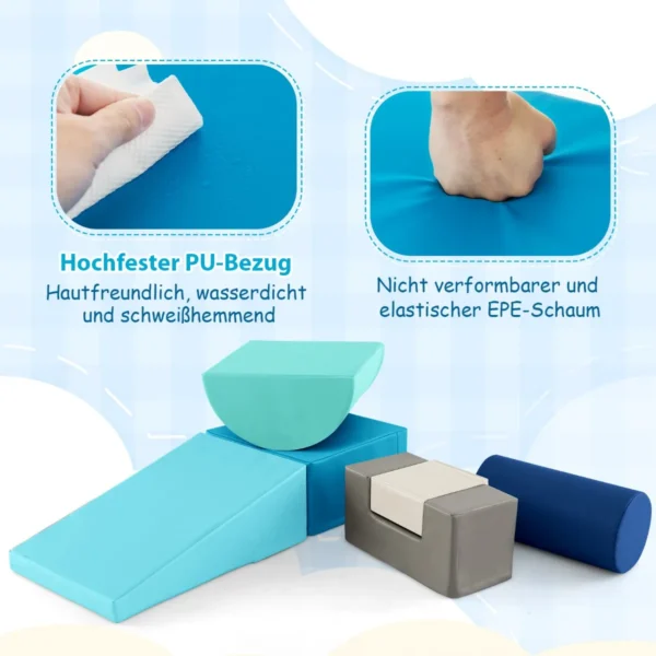 - Minkšti laipiojimo ir ropojimo blokeliai užpildyti elastingomis EPE putomis geresnei amortizacijai.