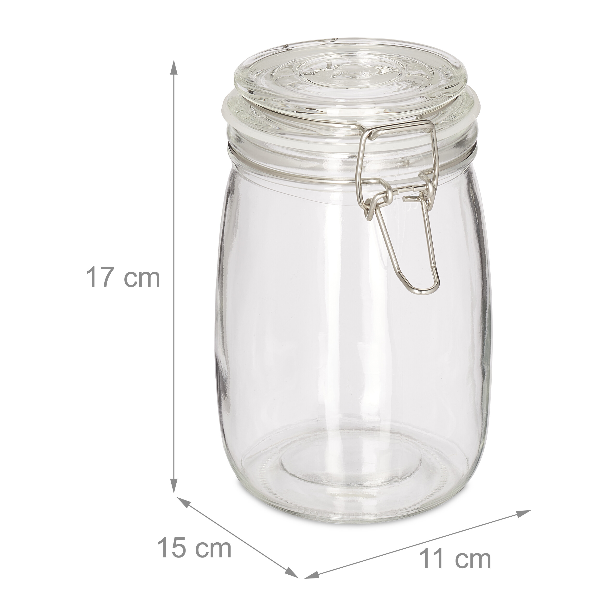 Rinkinys iš 6 stiklinių maisto laikymo indų 1L, sidabrinės spalvos