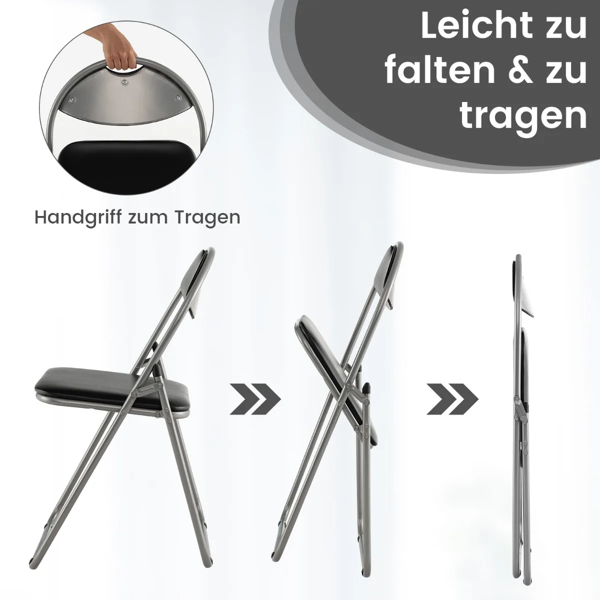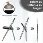 - Lengvas sulankstymas leidžia taupyti vietą ir greitai paruošti kėdes naudojimui