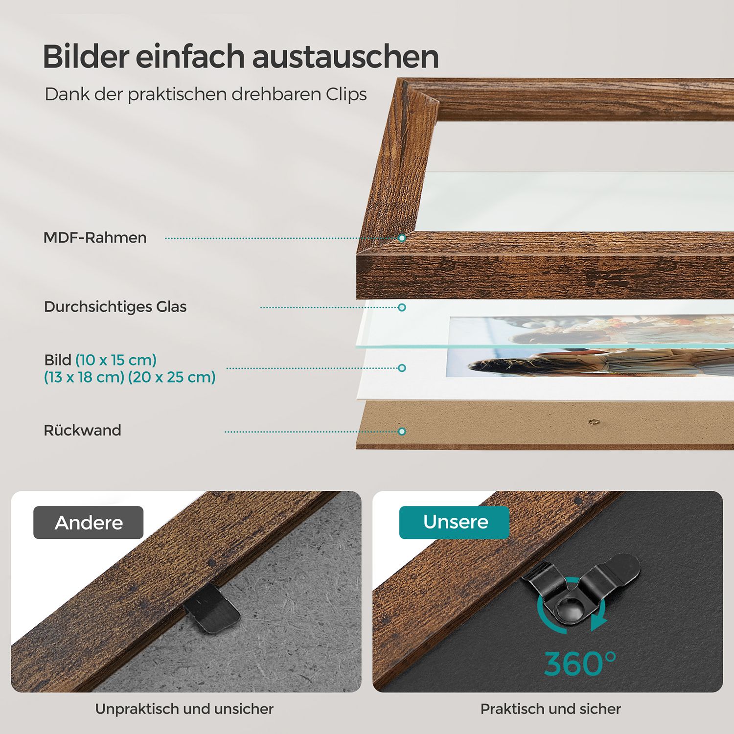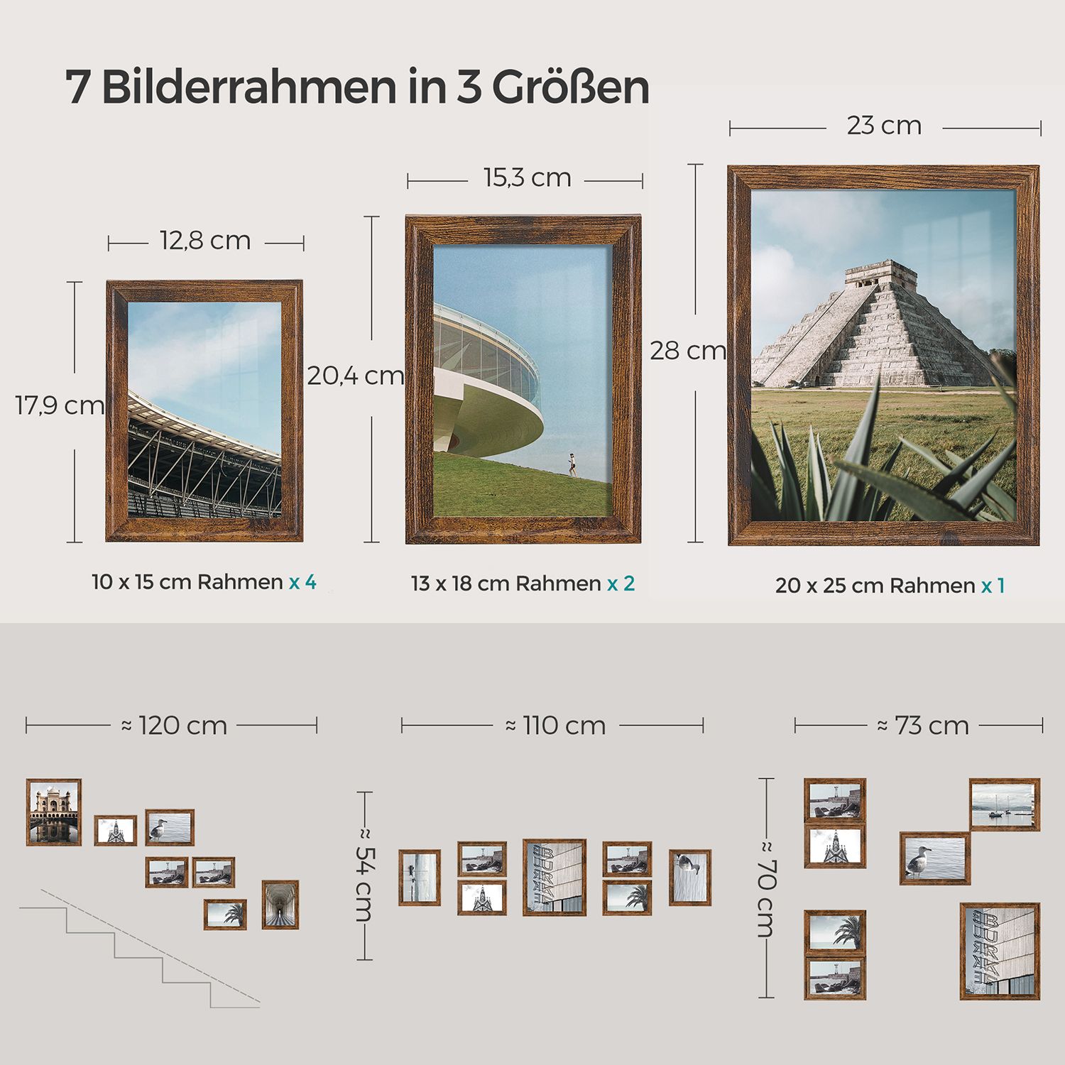 Pristatome elegantišką ir stilingą rinkinį iš 7 nuotraukų rėmelių, kurie puikiai papildys jūsų namų interjerą. Šie rėmeliai yra pagaminti iš aukštos kokybės MDF medžiagos ir stiklo, suteikiantys jūsų nuotraukoms ypatingą išvaizdą ir apsaugą.