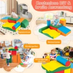 Rinkinys iš 7 statybinių blokelių įvairių spalvų skirtas lavinti vaikų motoriką, kūrybiškumą ir koordinaciją. Šis minkštų kaladėlių rinkinys tinka tiek namams, tiek vaikų darželiams ar žaidimų zonoms, užtikrinant saugų ir įvairiapusį žaidimą.