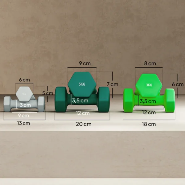 - ✔ Visas hantelių rinkinys: 2 x 1 kg, 2 x 3 kg, 2 x 5 kg