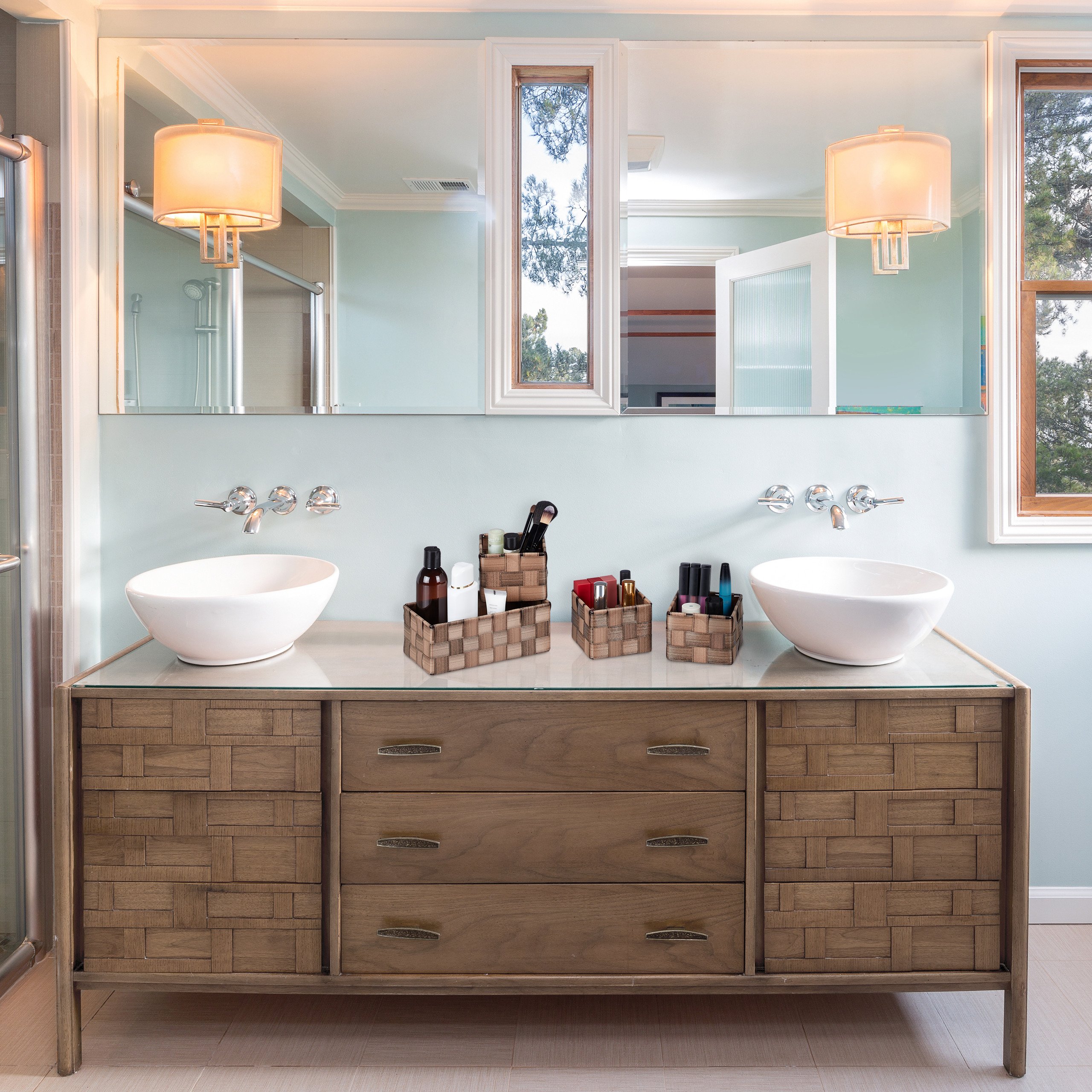 Rinkinys iš 8 krepšelių, rudos spalvos