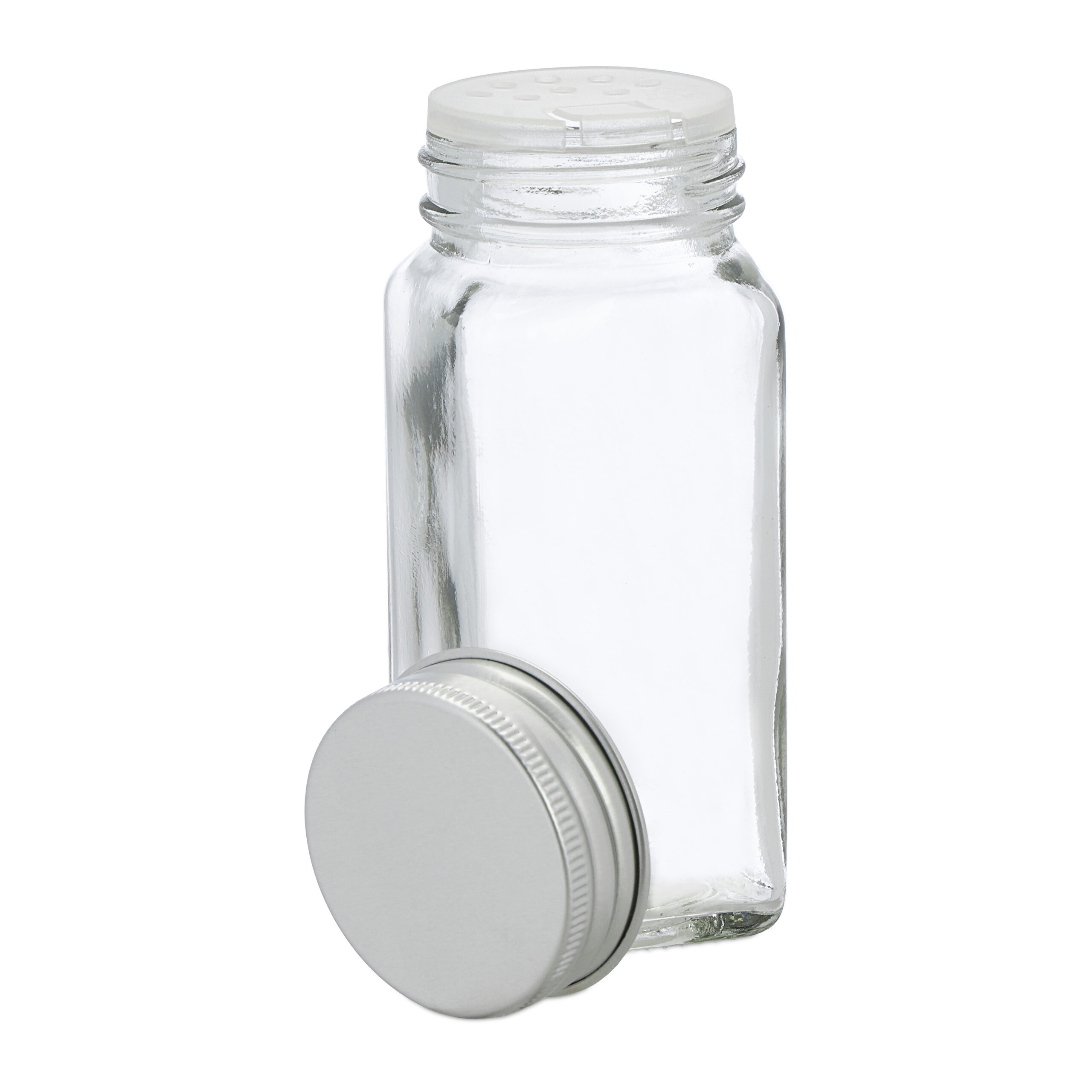 Rinkinys iš 8 Skaidrių Prieskonių Indelių – Sidabrinės Spalvos