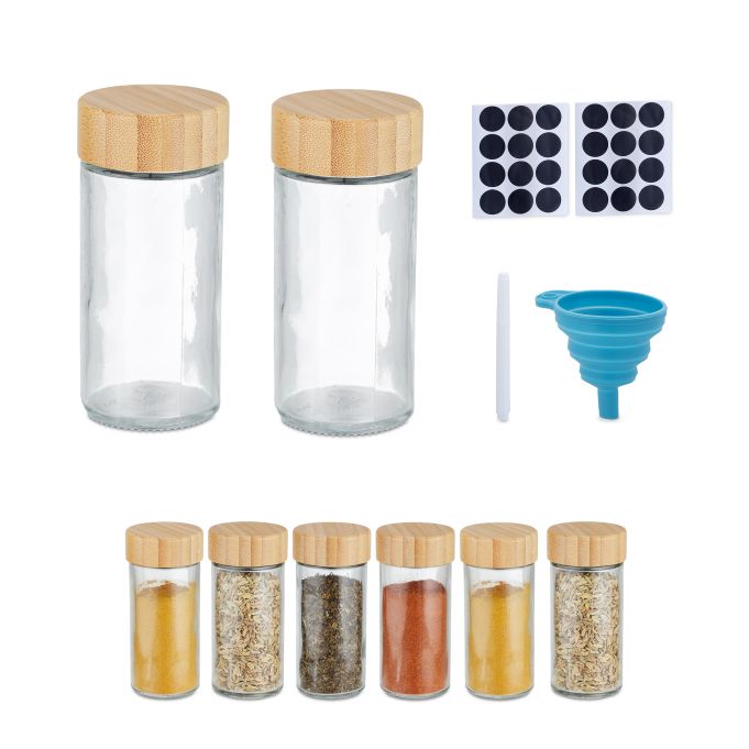• Medžiaga: Skaidrus stiklas – leidžia lengvai matyti prieskonių kiekį ir rūšį.