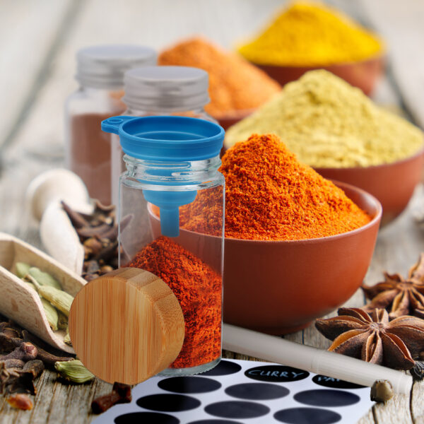• Patogus užpildymas: Komplekte esantis piltuvas leidžia greitai ir lengvai užpildyti indelius.