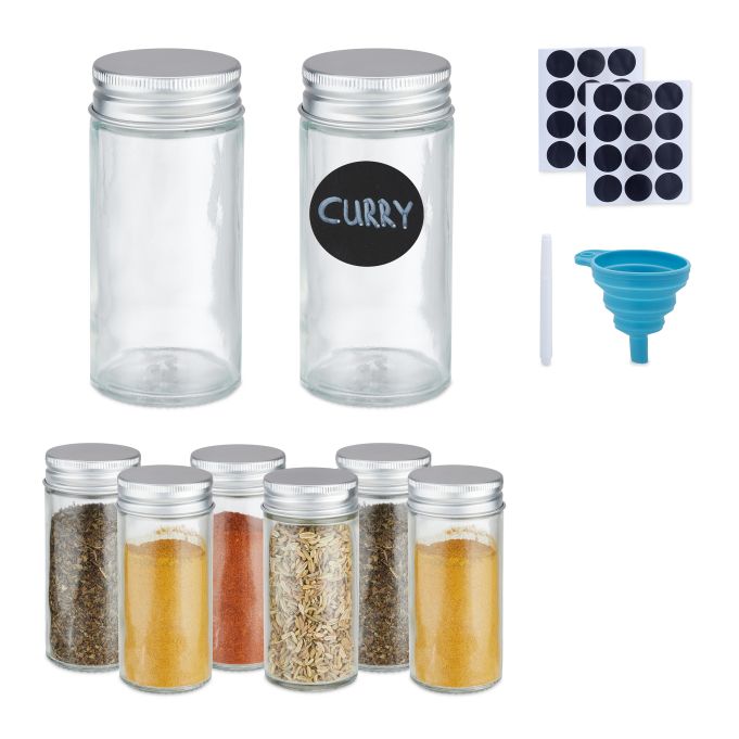 Rinkinys iš 8 Skaidrių Prieskonių Indelių