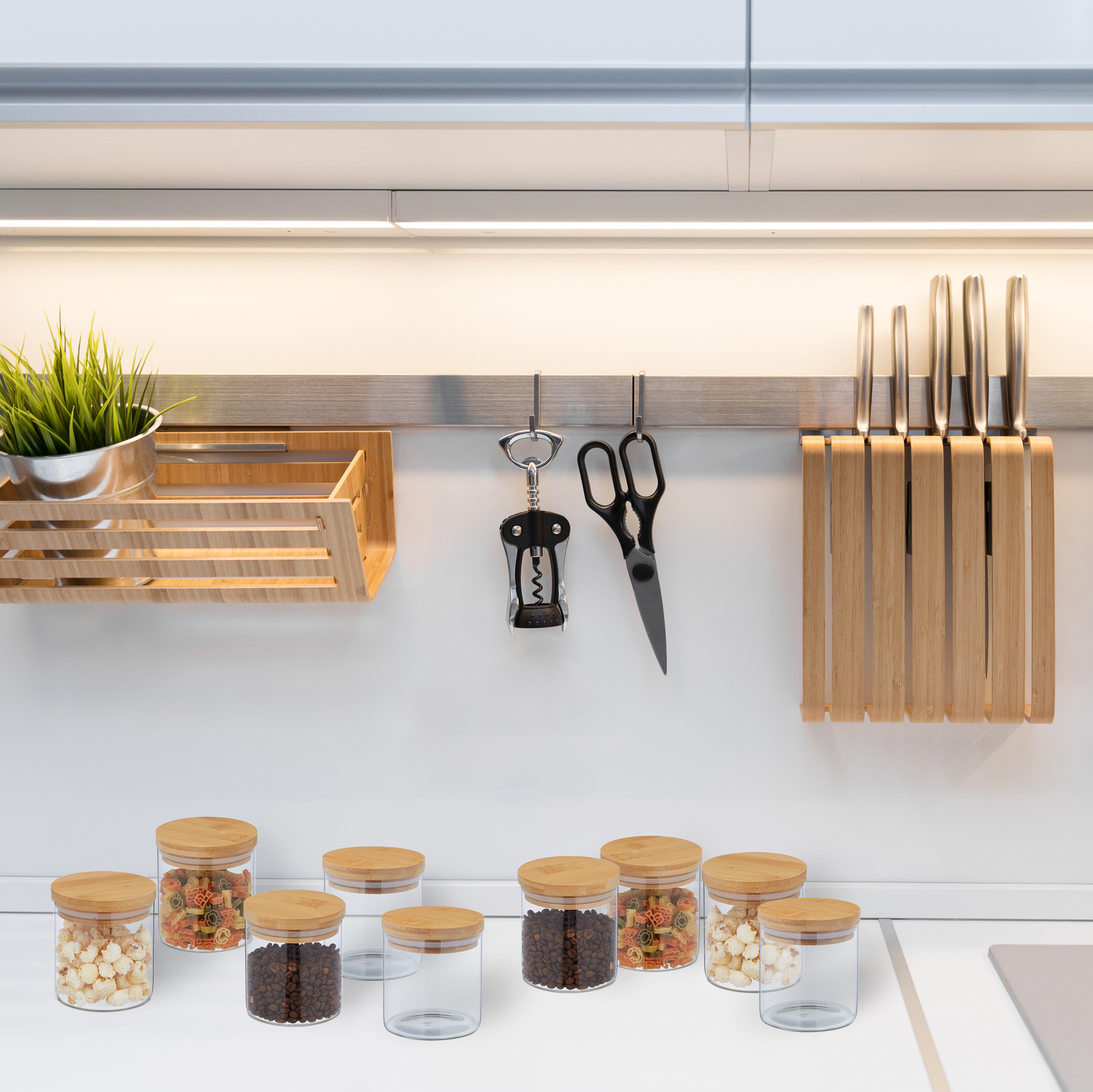 Šis rinkinys yra ne tik praktiškas, bet ir stilingas sprendimas jūsų virtuvei. Skaidrus dizainas leidžia lengvai matyti, kas yra viduje, todėl visada žinosite, kada reikia papildyti atsargas. Pasirinkite šį rinkinį ir mėgaukitės tvarkinga bei estetiška virtuve!