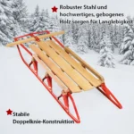 - Tvirta medinė ir metalinė rogė su milteliniu būdu dengtu plieniniu rėmu.