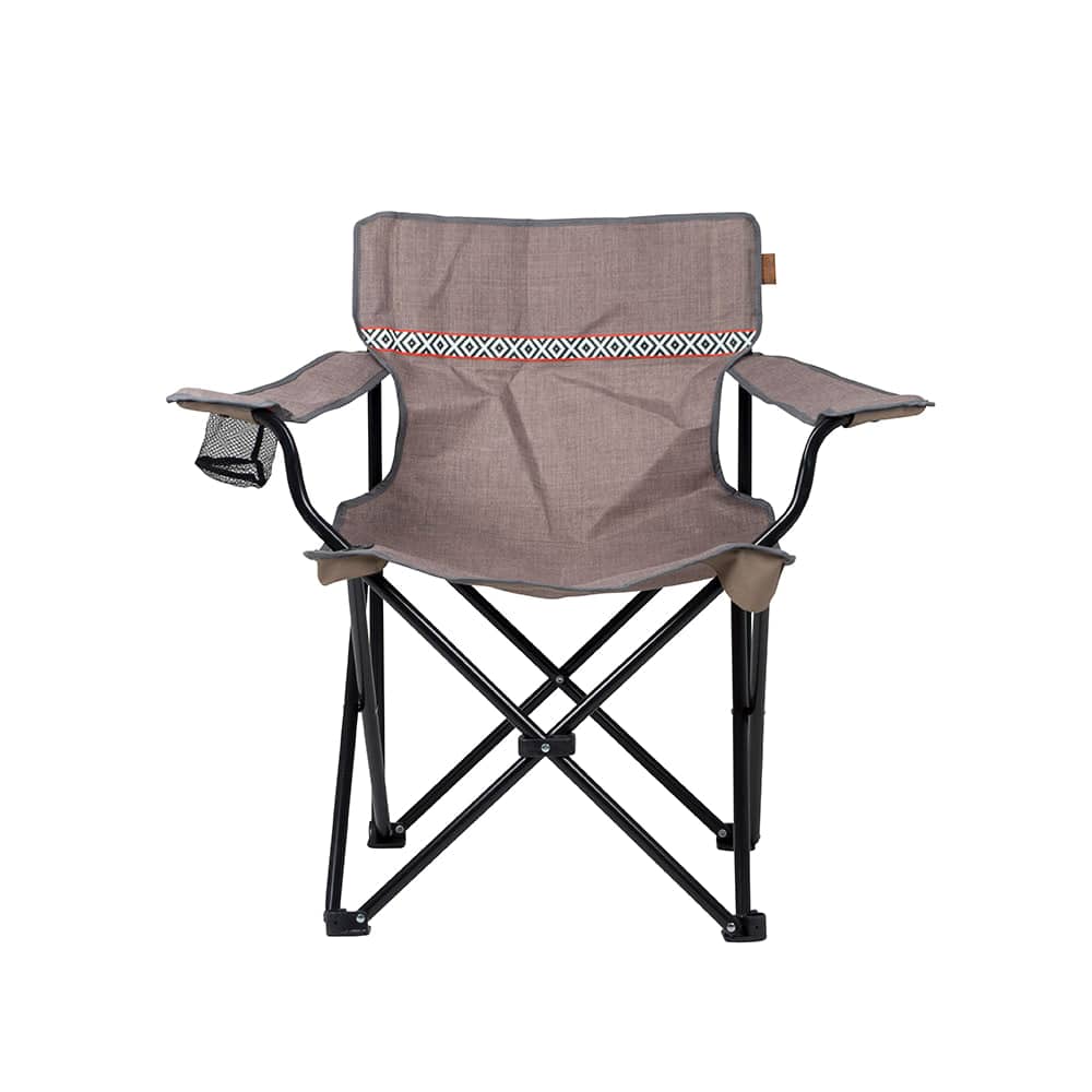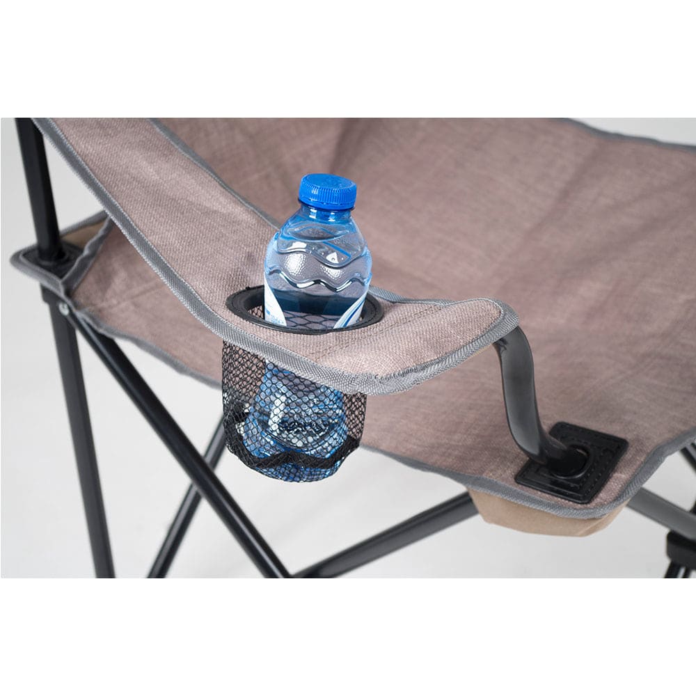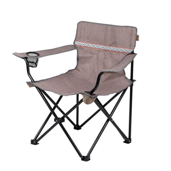 Klasikinė Romford stovyklavimo kėdė yra praktiška ir universali. Puikiai tiks kempinguose, paplūdimyje, parke, sode ar balkone. Pagaminta iš patvaraus, atsparaus audinio ant tvirto plieno rėmo. Porankyje yra tinklinis gėrimų laikiklis. Kėdę lengva sulankstyti ir išskleisti, todėl negaištame brangaus surinkimo laiko. Lengvas ir kompaktiškas. Sulenktas užima mažai vietos. Pridedamas krepšys. Matmenys: Aukštis: 80 cm Plotis: 54 cm Ilgis aukštis: 86 cm Produkto informacija: – Medžiaga: plieninis rėmas / Oksfordo poliesteris – Spalva: smėlio – Maksimali apkrova iki 100 kg – Sulenkti matmenys: 86x12x13cm – Svoris: 2,3 kg